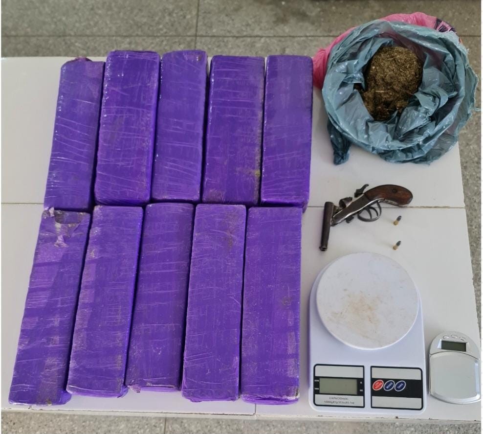 Militares da Rondesp Chapada capturaram um homem com dez tabletes de maconha, pesando sete quilos, uma pistola calibre 22, um saco menor com outra porção da erva e uma balança, após levantamentos do Setor de Inteligência da unidade. O flagrante ocorreu na localidade de Vila Maria, em Ipirá, na terça-feira (10).