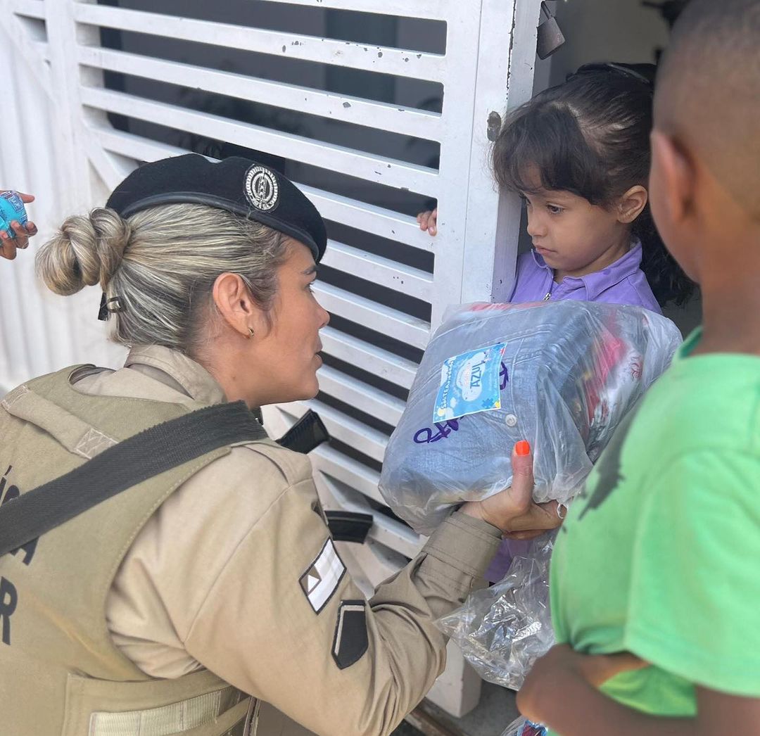 Na cidade de Vitória da Conquista, a Patrulha Solidária da PM iniciou a entrega de 2 mil brinquedos nos bairros de Recanto das Águas, Patagônia, Vila Elisa e na localidade de Campo Verde. “Até o fim da próxima semana, estamos na missão de entregar os demais artigos infantis, adquiridos com ajuda dos nossos parceiros”, contou a capitã Maria Alice de Santana, coordenadora da Patrulha.