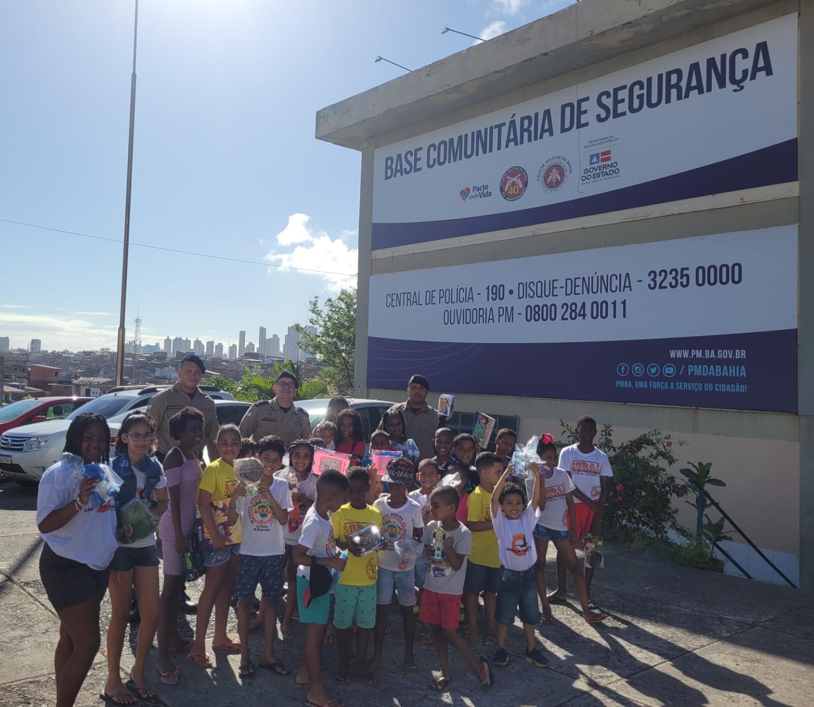 Já a Base do Nordeste/Vale, em parceria com o Centro Social Urbano do Nordeste de Amaralina, entregou 150 brinquedos arrecadados pela a população e policiais militares.