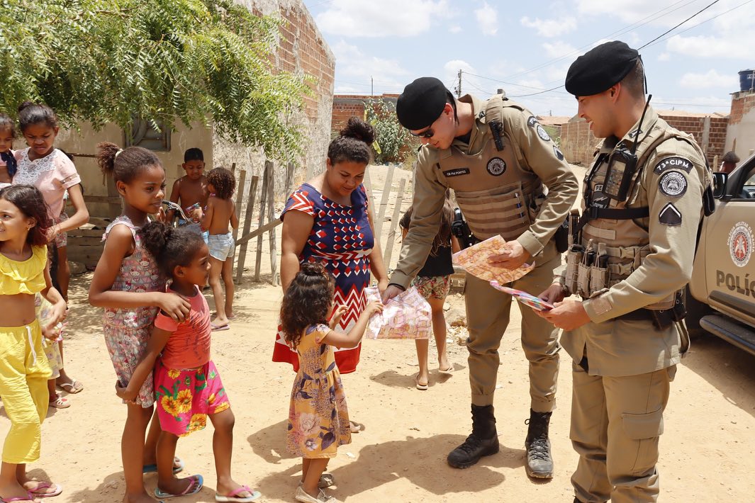 A 96ª Companhia Independente de Polícia Militar (CIPM) promoveu na comunidade de Quixaba, localizada no município de Sento Sé, a doação de 114 brinquedos para alunos da Escola Plácido Martins Duarte. Em Juazeiro, a 73ª CIPM entregou 600 brinquedos arrecadados para comunidades carentes da cidade.