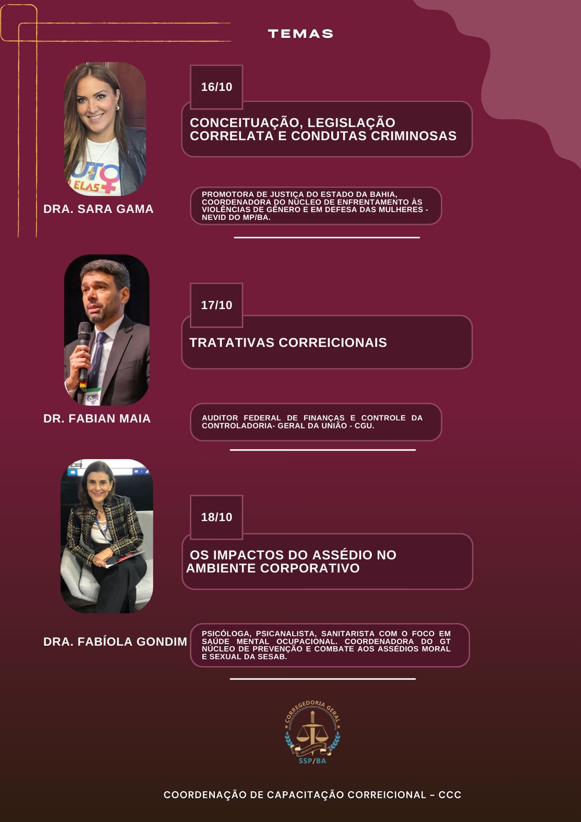 O curso faz parte do Plano Anual de Capacitação da Corregedoria Geral da SSP, que possui uma grade de capacitações com o intuito de preparar o servidor para melhor servir a sociedade e evitar condutas incoerentes no ambiente de trabalho.