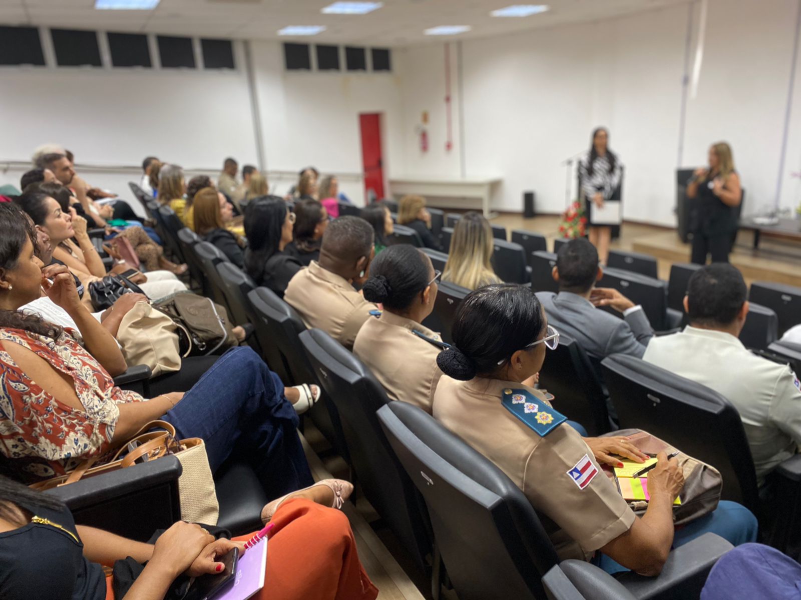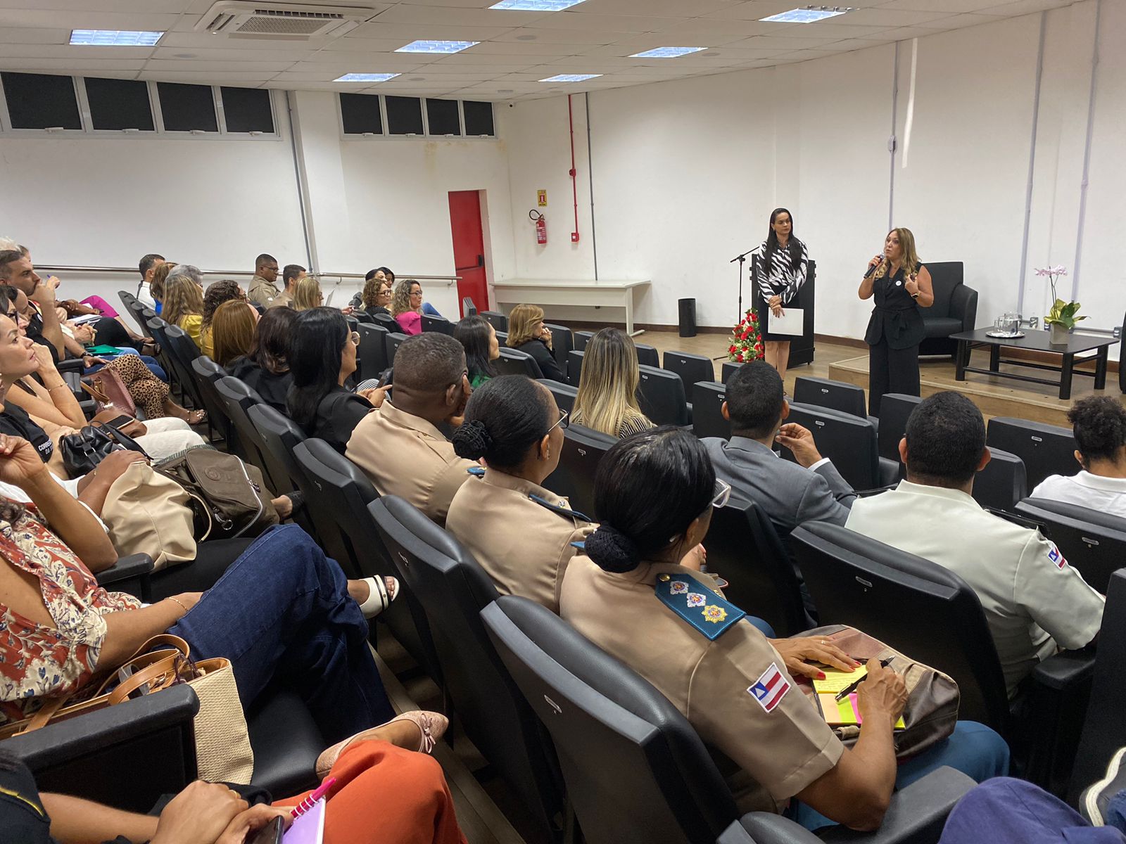 Na manhã de hoje foram trabalhadas conceituação, legislação e condutas criminosas, por Sara Gama, promotora de Justiça e coordenadora do Núcleo de Enfrentamento às Violências de Gênero e em Defesa das Mulheres.