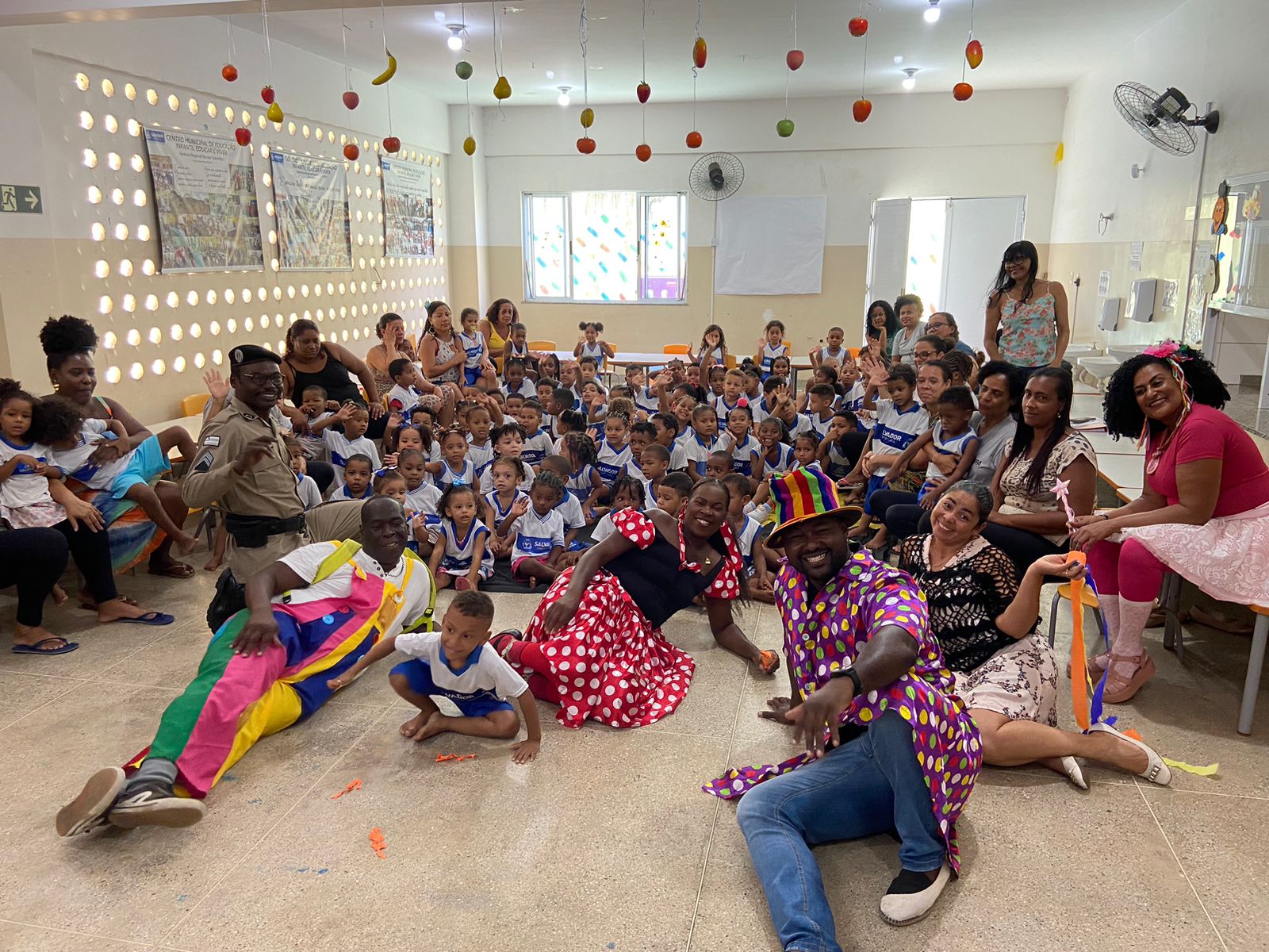 Mais de 100 alunos do Centro Municipal de Educação Infantil Educar e Viver, localizado no bairro de Vista Alegre, em Salvador, tiveram uma manhã diferente e aprenderam lições de cidadania ao assistirem a peça “A História de Pedrinho”, apresentado por policiais militares do Grupo de Teatro da PMBA.