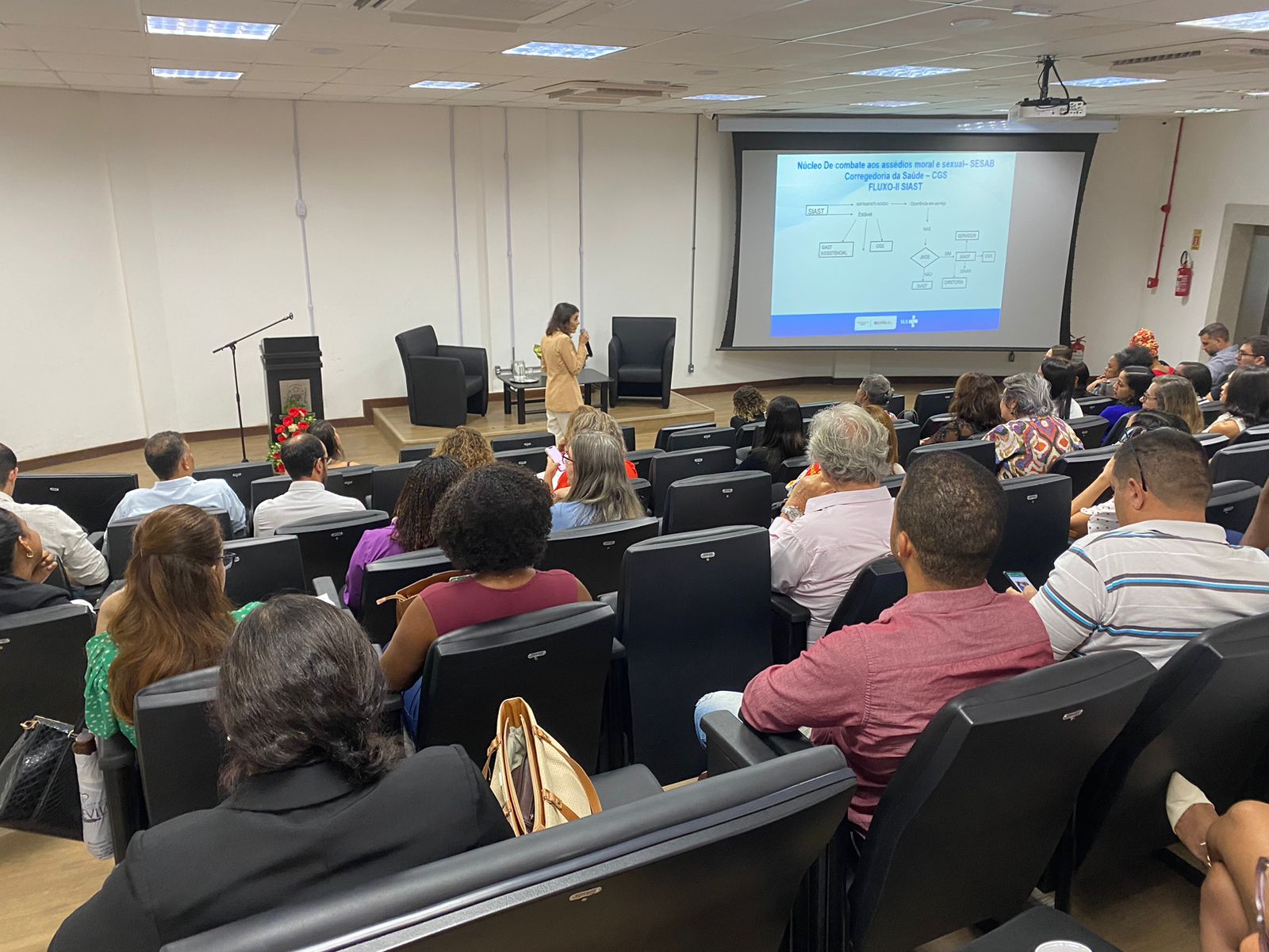 Durante a manhã, uma palestra sobre os impactos do assédio no ambiente corporativo foi apresentada pela psicóloga Fabíola Gondim, que também é psicanalista e Coordenadora do Núcleo de Prevenção e Combate aos Assédios Moral e Sexual da Secretaria da Saúde (Sesab).