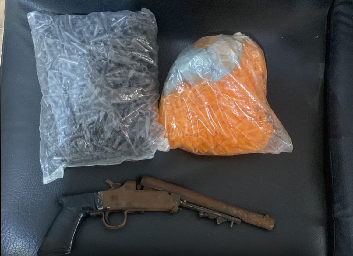 O suspeito detido, a arma de fogo apreendida e os demais materiais foram apresentados à delegacia que atende à cidade.