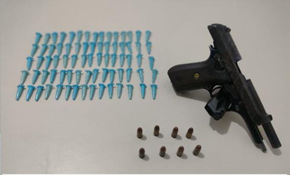 Com o traficante foram apreendidos uma pistola calibre 9mm, carregador, munições e 75 pinos de cocaína. A ocorrência foi registrada na Delegacia Territorial (DT) de Jacobina.