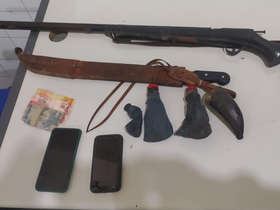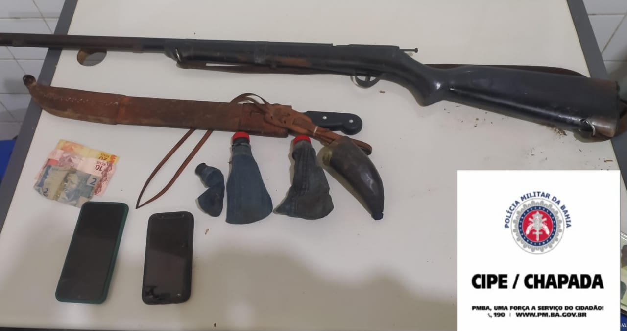 No momento da prisão, o criminoso estava com uma espingarda e munições de recarga. Ele foi preso e conduzido, juntamente com o material apreendido, para a delegacia de Itaberaba.