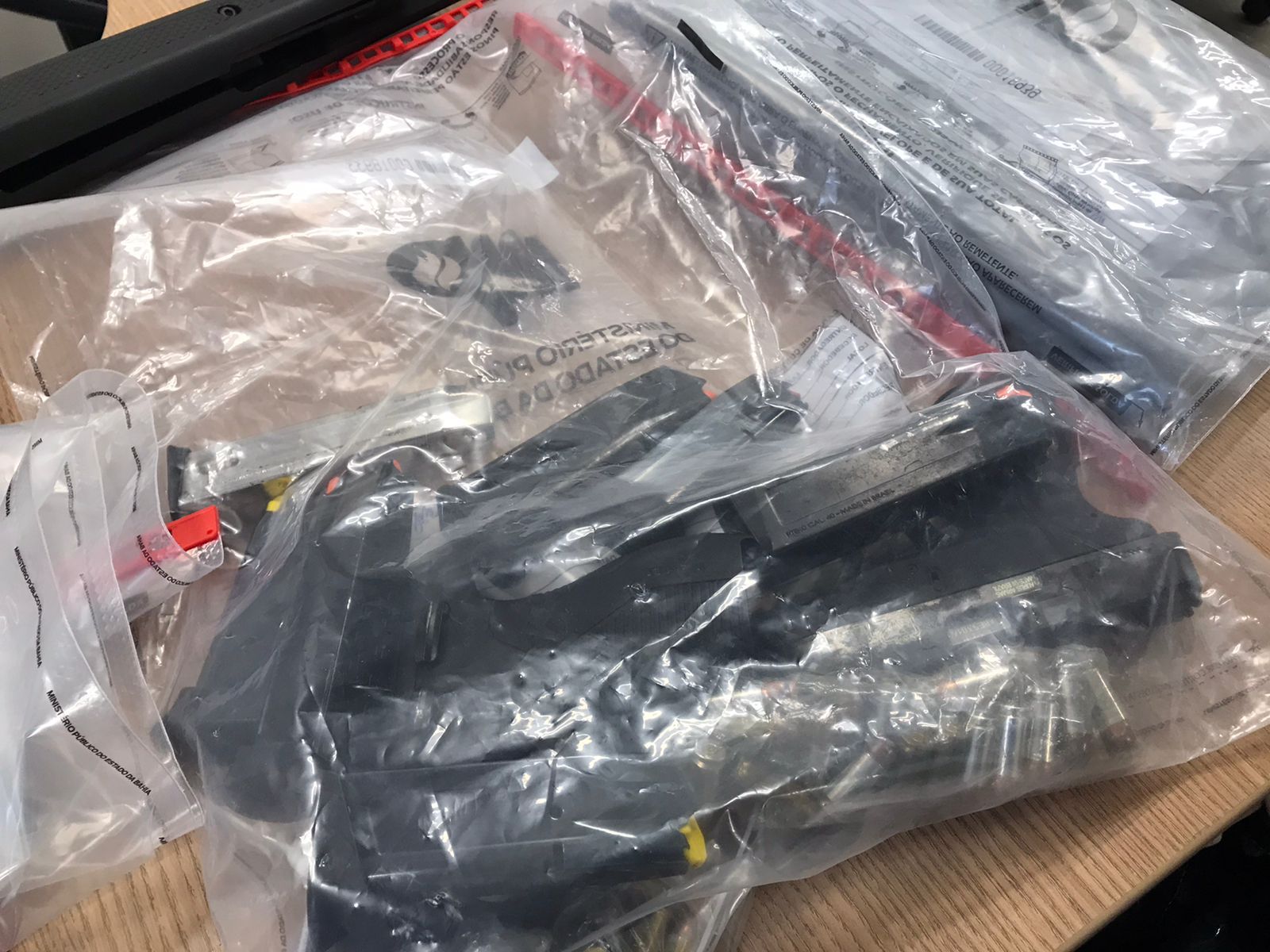 Durante o cumprimento das ações judiciais, uma mala com tabletes de cocaína, duas pistolas calibres 9 milímetros e .40, sete carregadores, 81 munições, notebook, documentos e balança foram achados.