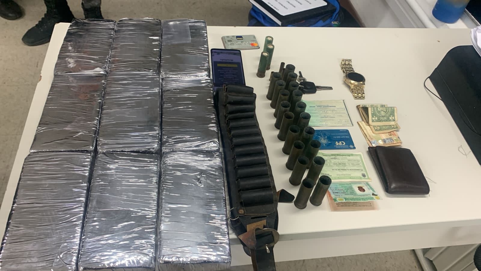 O carro modelo Gol foi interceptado e cercado pelos policiais civis e militares. Dentro do veículo foram localizados nove tabletes de cocaína, munições e um celular.