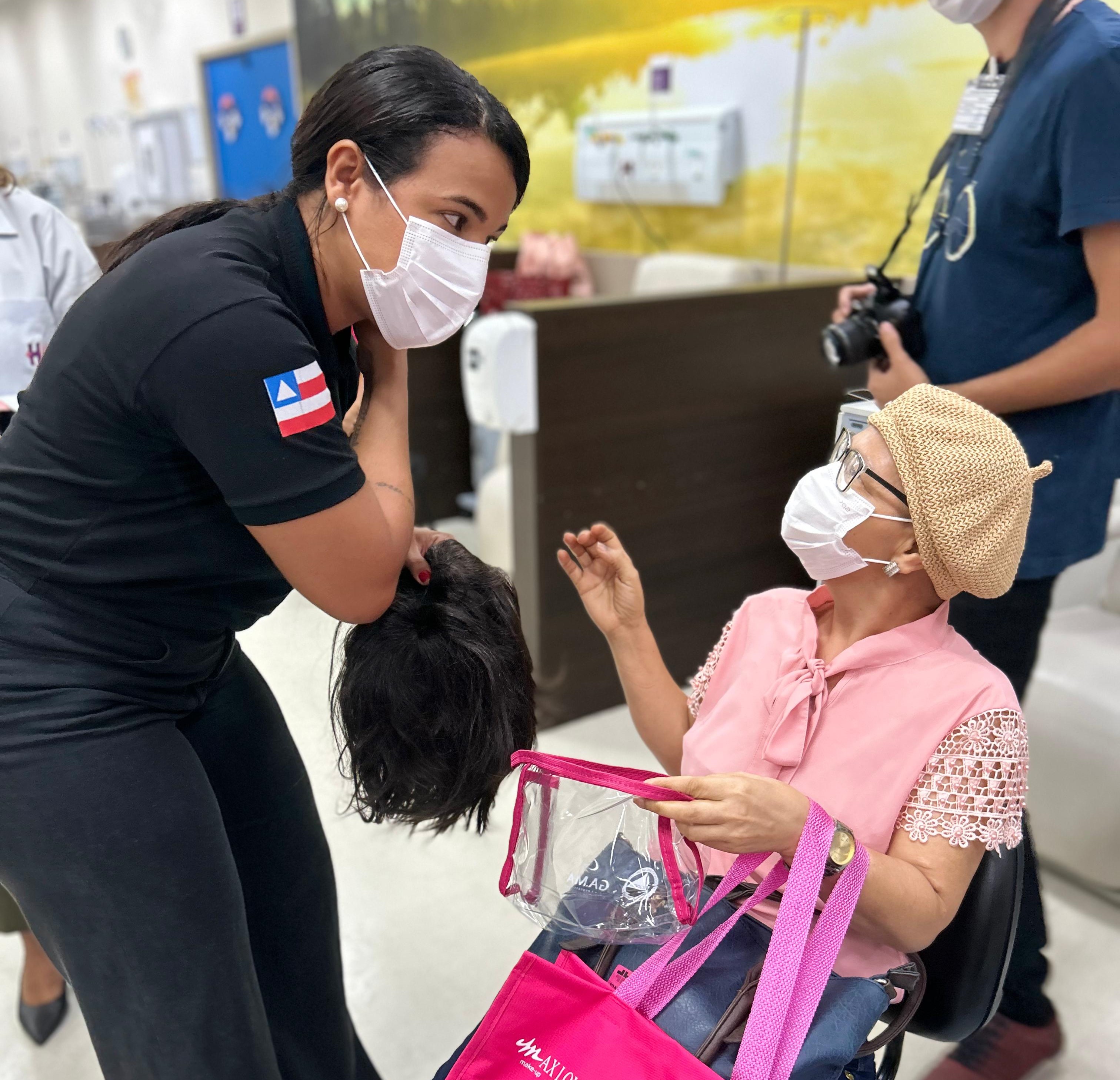 A Superintendência de Prevenção à Violência (Srpev) da Secretaria da Segurança pública entregou na manhã desta quinta-feira (28), 12 kits da campanha ‘Ligadas por Fios' para pacientes oncológicas do Hospital da Mulher, em Salvador. Os kits contam com perucas confeccionadas a partir de mechas de cabelo doadas.