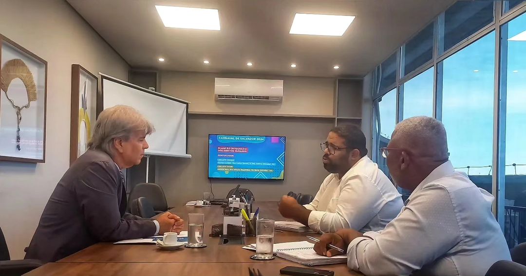 Apresentar as ações da Secretaria de Justiça e Direitos Humanos (SJDH) no Carnaval de Salvador à Corregedoria-Geral da Secretaria de Segurança Pública da Bahia (SSP) foi o tema da reunião realizada na tarde desta terça-feira, 6, entre o secretário Felipe Freitas e o Corregedor-Geral, Sérgio Mendes. Na agenda, o funcionamento do Plantão Integrado dos Direitos Humanos em eventos populares da Bahia para combater violações de direitos durante a folia e as ações preventivas que integram o projeto.