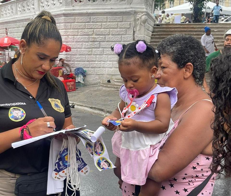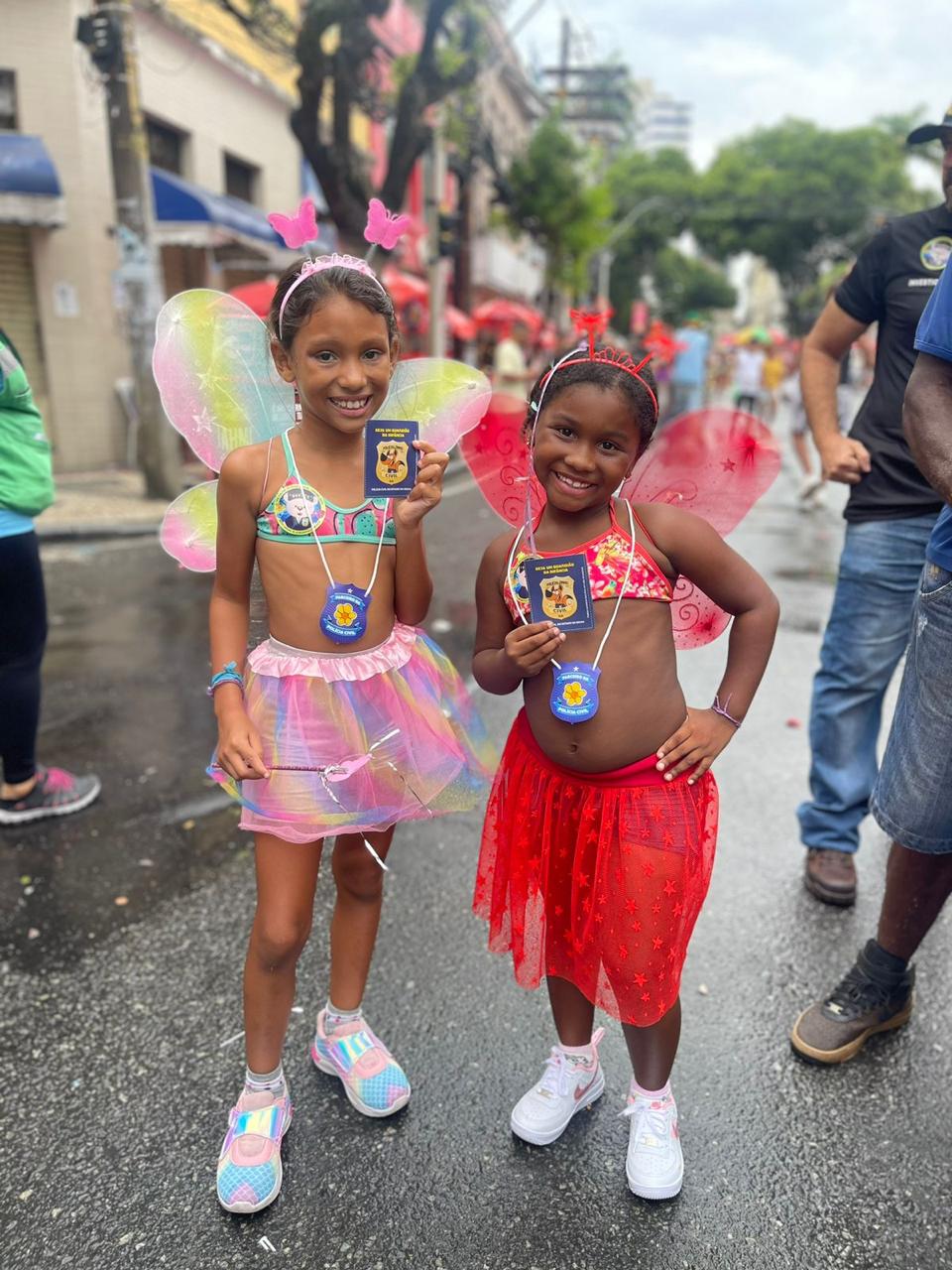 Os policiais da Dercca ainda realizaram, neste sábado, na saída dos blocos infantis a distribuição dos distintivos de proteção a criança e realizou a emissão da ‘Carteira do Policialzinho Civil’ que possui um QR-Code com a localização dos postos onde a criança pode ser apresentada em caso de desaparecimento.