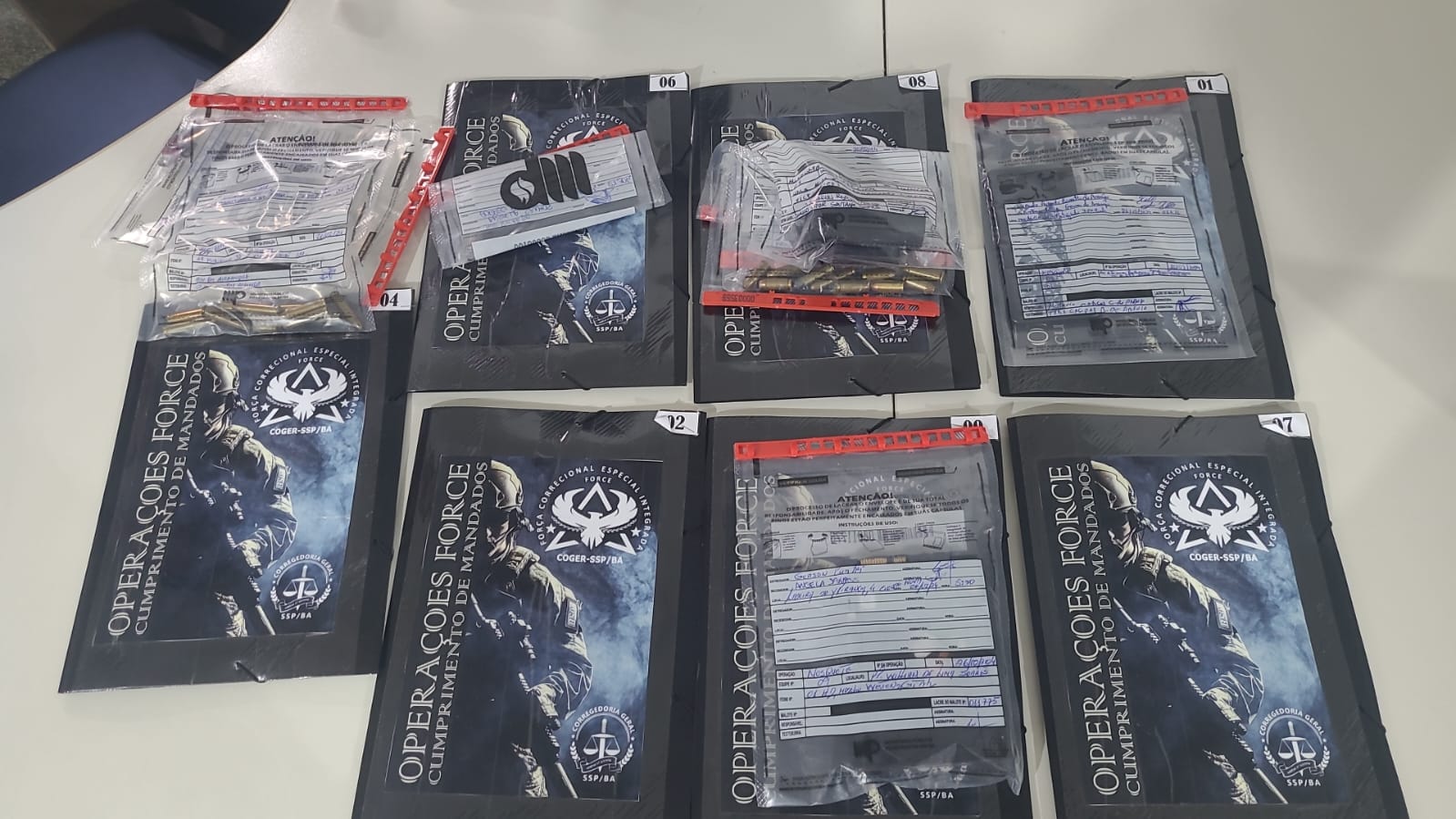 Equipes da Força Correcional Especial Integrada (Force) da Corregedoria Geral da SSP, da Corregedoria da PM e do Grupo de Atuação Especial de Combate ao Crime Organizado (Gaeco) do MP cumpriram as ordens judiciais nos bairros de Cajazeiras, Fazenda Coutos, Caminho de Areia, Garcia, Cidade Nova e Tancredo Neves.