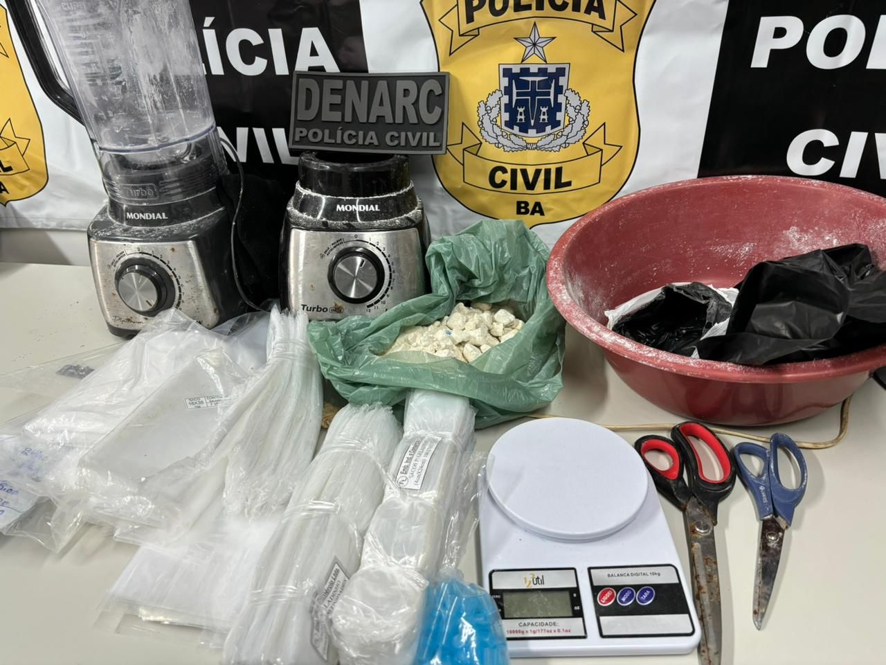 Equipamentos e embalagens utilizados pelos traficantes foram encontrados em uma casa abandonada na localidade, onde os materiais eram utilizados por um grupo criminoso responsável pelo tráfico na região. Foram encontrados, liquidificadores, uma balança digital, duas tesouras, sacos plásticos para embalar as drogas e aproximadamente um quilo e 100 gramas de cocaína.