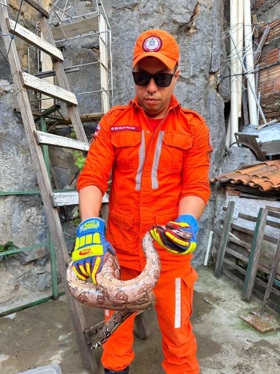 Uma jiboia foi devolvida à natureza por bombeiros militares do 20º BBM, em Bom Jesus da Lapa, na manhã desta quinta-feira (29). O animal foi resgatado no quintal de uma casa da rua Algaroba, no centro de Bom Jesus da Lapa.