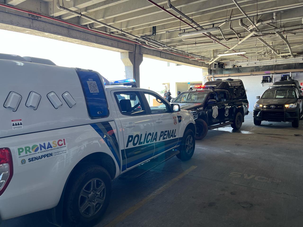 A escolta do interno foi feita pela Polícia Penal e contou com o apoio de policiais militares do Batalhão de Choque.
