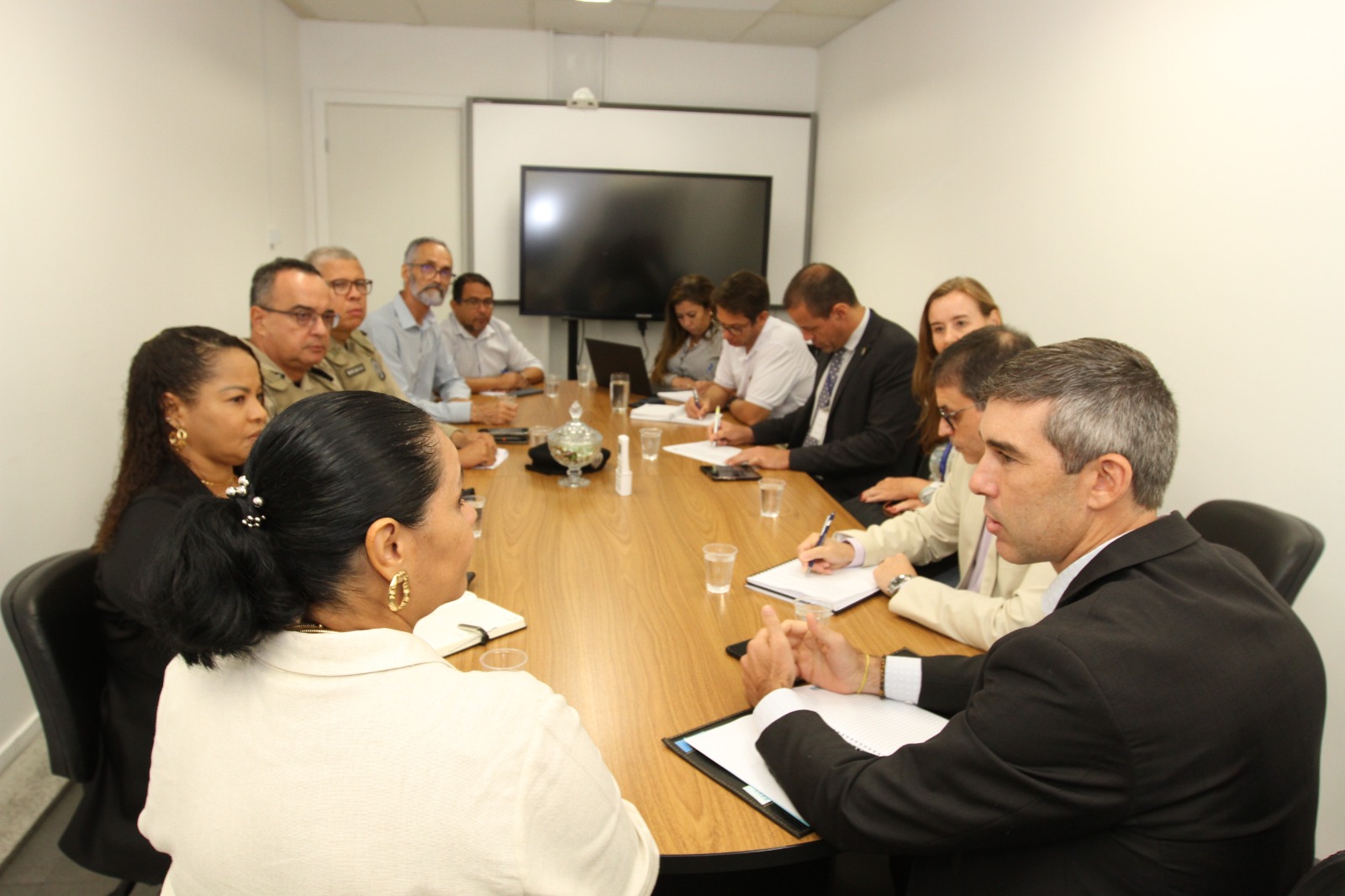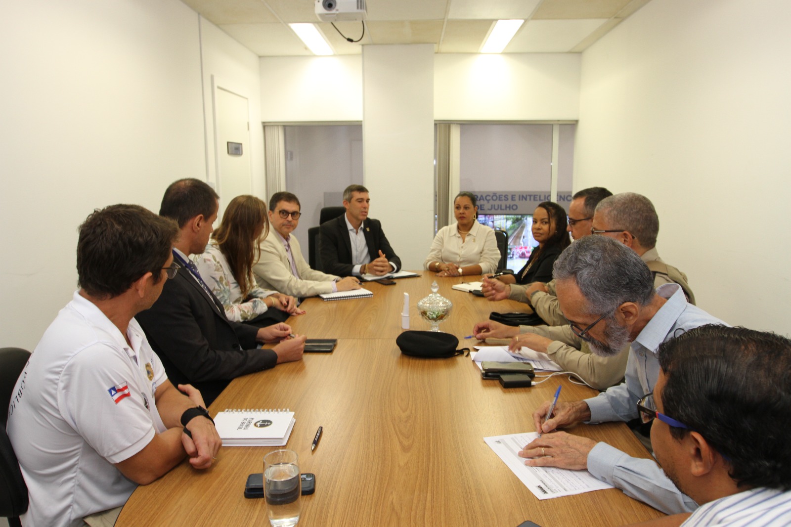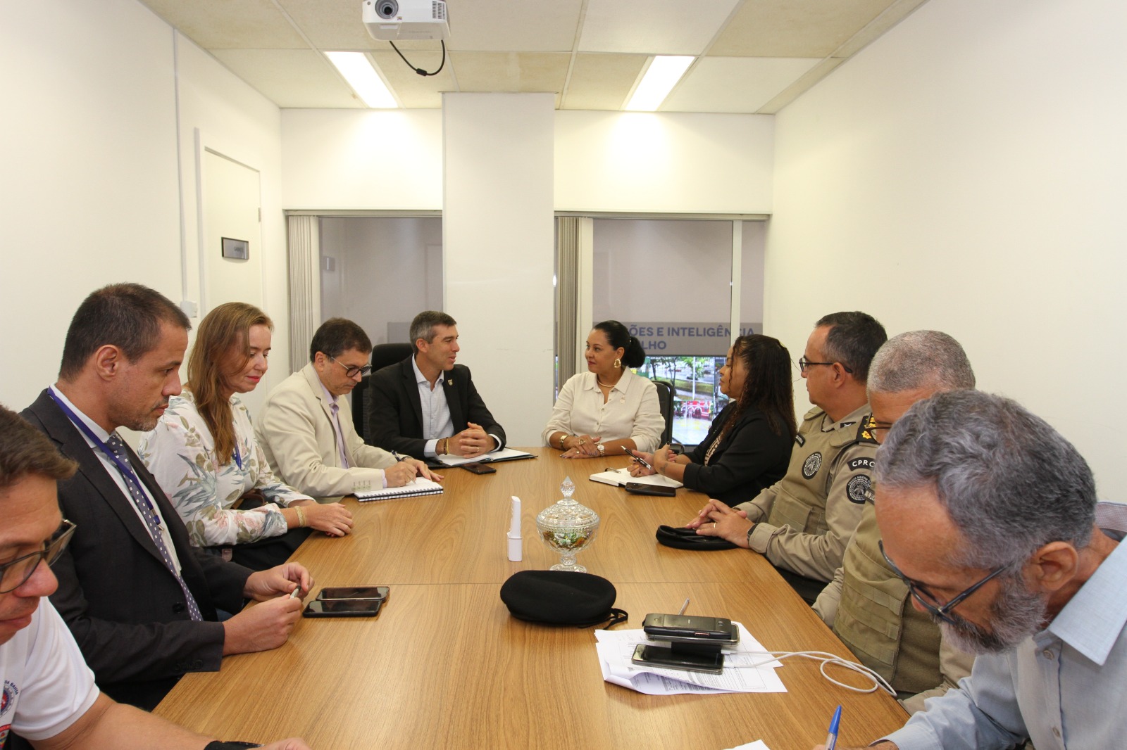 Patrulhamento a pé e com viaturas, sugestão de colocação de câmeras de segurança e drones foram dialogadas para serem utilizados de forma preventiva.