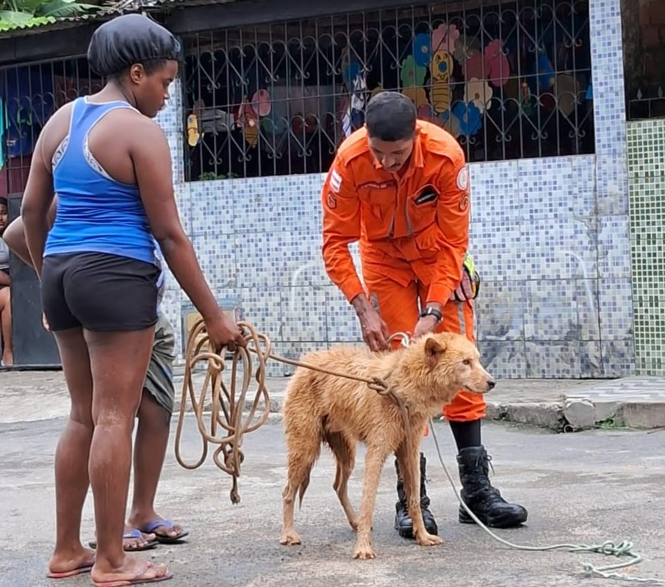 Um cachorro que estava dentro de um buraco de sapata de construção de cerca de 3 metros de profundidade foi resgatado por uma guarnição do 3º Batalhão de Bombeiros Militar (3ºBBM), em Salvador. A ocorrência aconteceu na manhã desta segunda-feira (22), no bairro de Castelo Branco, na capital baiana. De acordo com populares, o animal estava há dois dias no local sem conseguir sair.