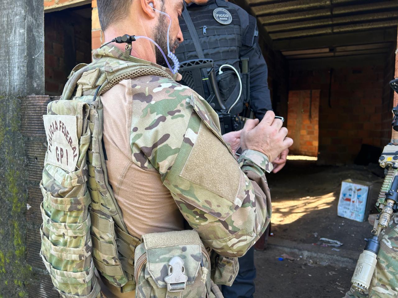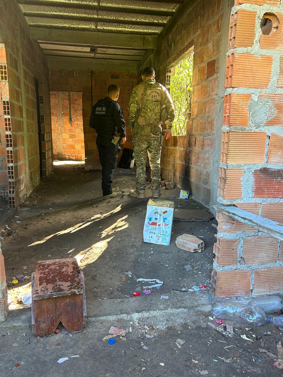 Os criminosos que integram uma facção fugiram durante a operação integrada da Forças Estaduais e Federal da Segurança Pública. Três armas, munições, carregadores, drogas, balanças e roupas camufladas foram localizados.
