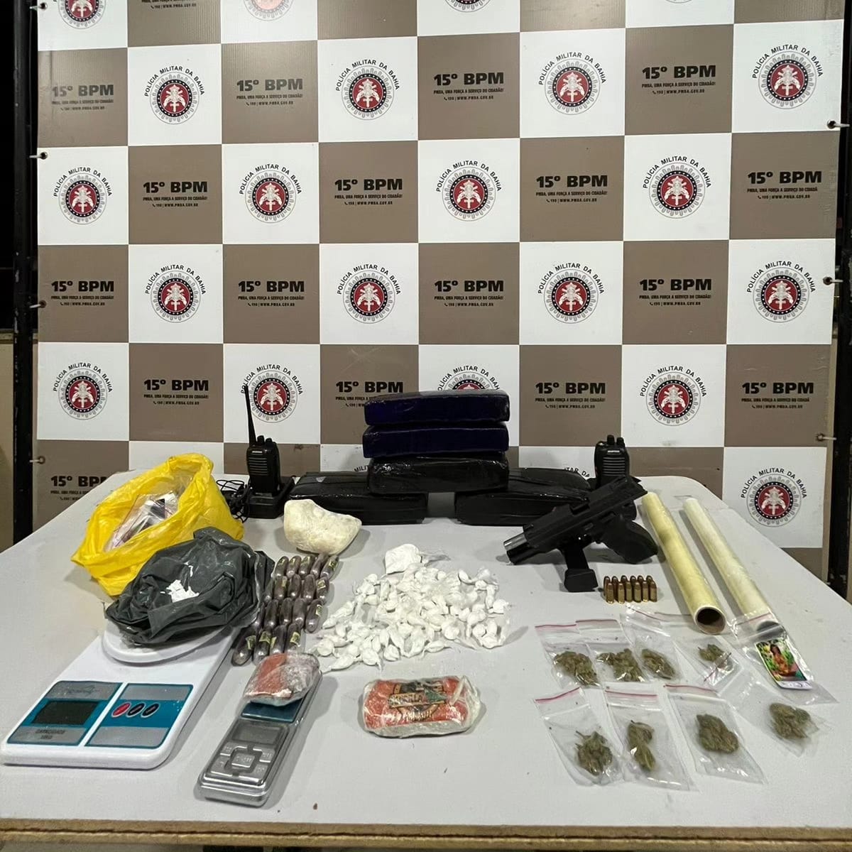 Na tarde de quarta-feira (17), policiais militares do 15º BPM apreenderam uma arma de fogo e mais de 5kg de drogas no bairro Jardim América em Itabuna.