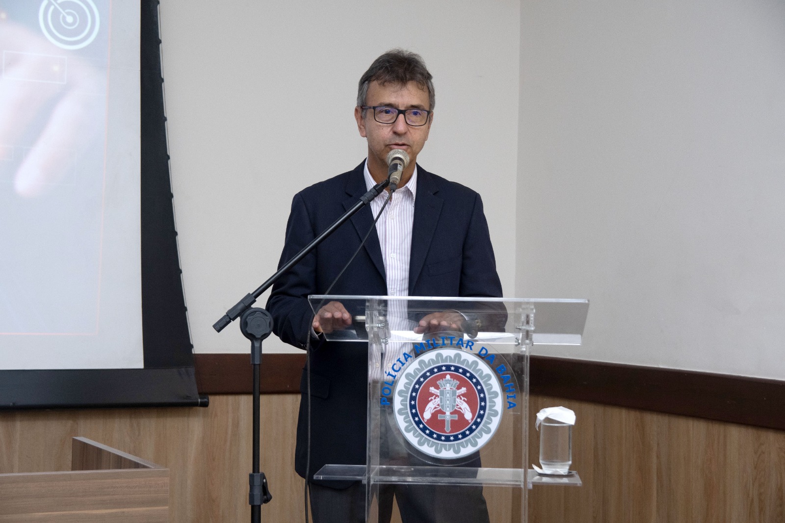 O coronel André Carvalho, diretor de Comunicação Social da PMBA, na sua fala de boas-vindas ao convidado, agradeceu à presença do secretário e parabenizou o coronel Nilton Machado, subcomandante-geral, presente no evento, sobre a relevância da criação da função das assessorias de comunicação nos comandos de policiamento da PMBA, que será publicada em breve no novo quadro organizacional.