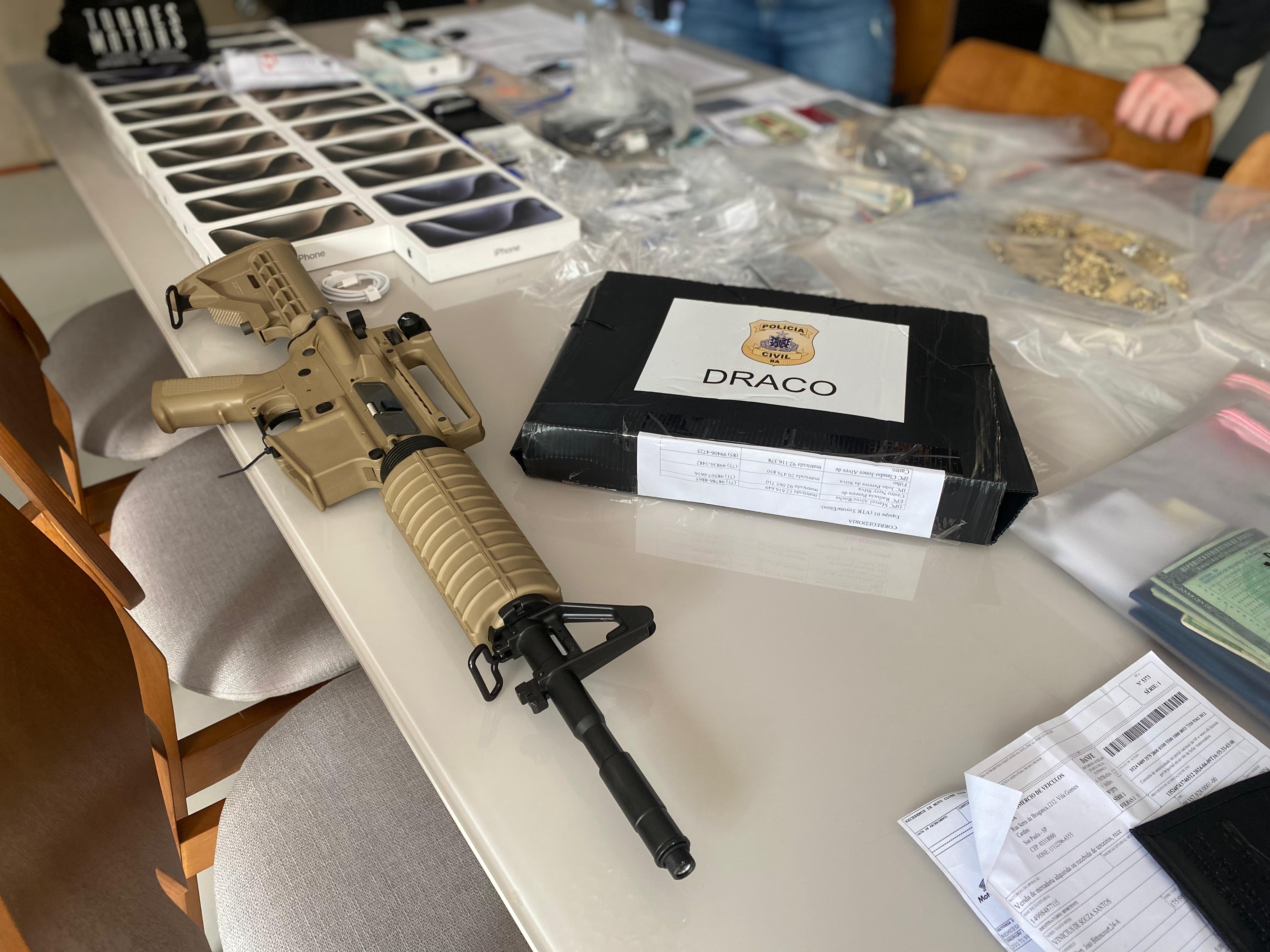 Foram apreendidos dezenas de veículos de luxo, relógios, armas de fogo, munições, celulares, roupas de grife, além de dinheiro em espécie
