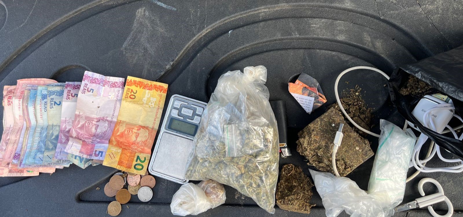 Foi dada a voz de abordagem e com os homens foi encontrada uma sacola contendo maconha, uma porção de cocaína, uma porção de crack e dinheiro em espécie.