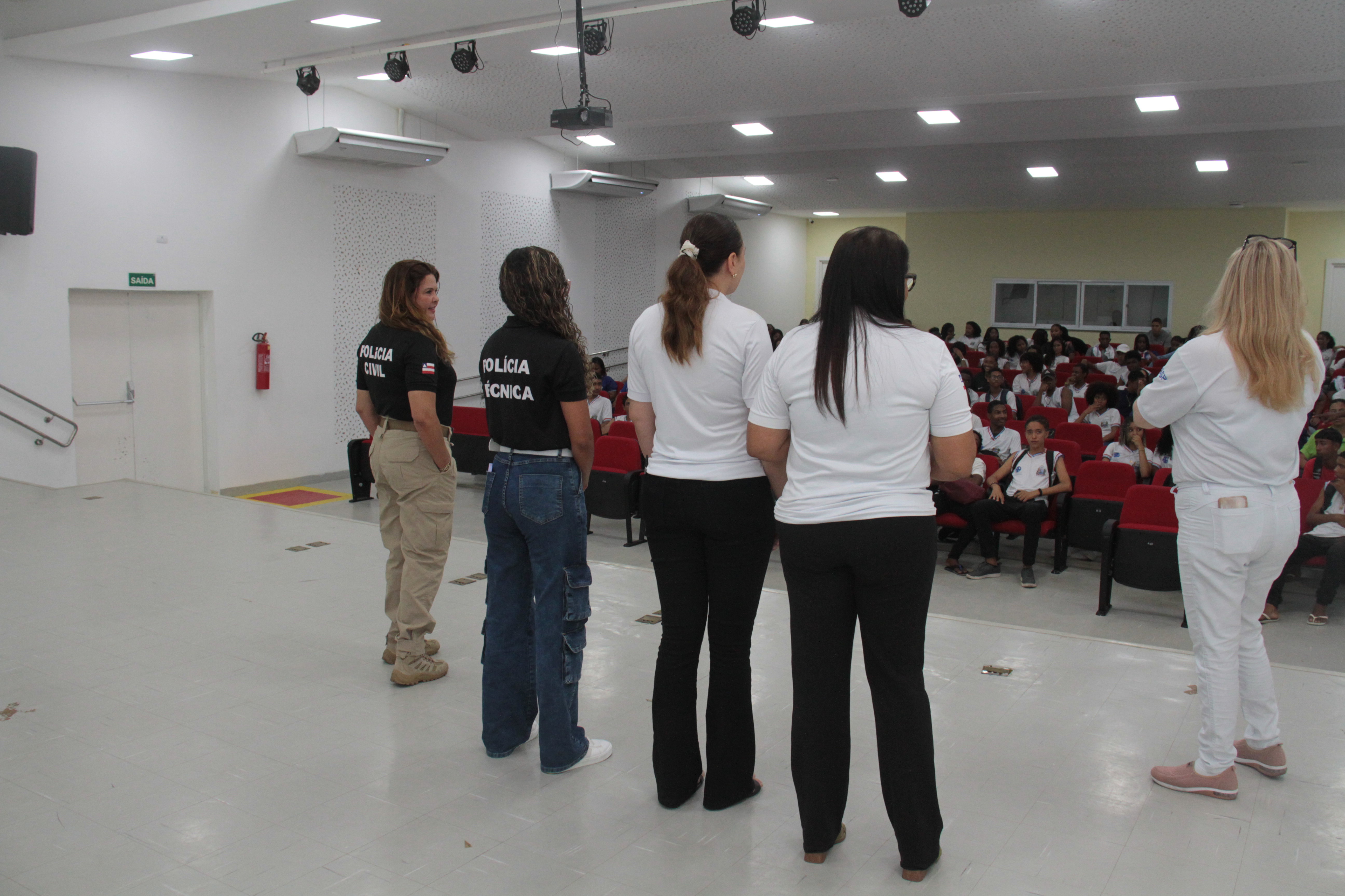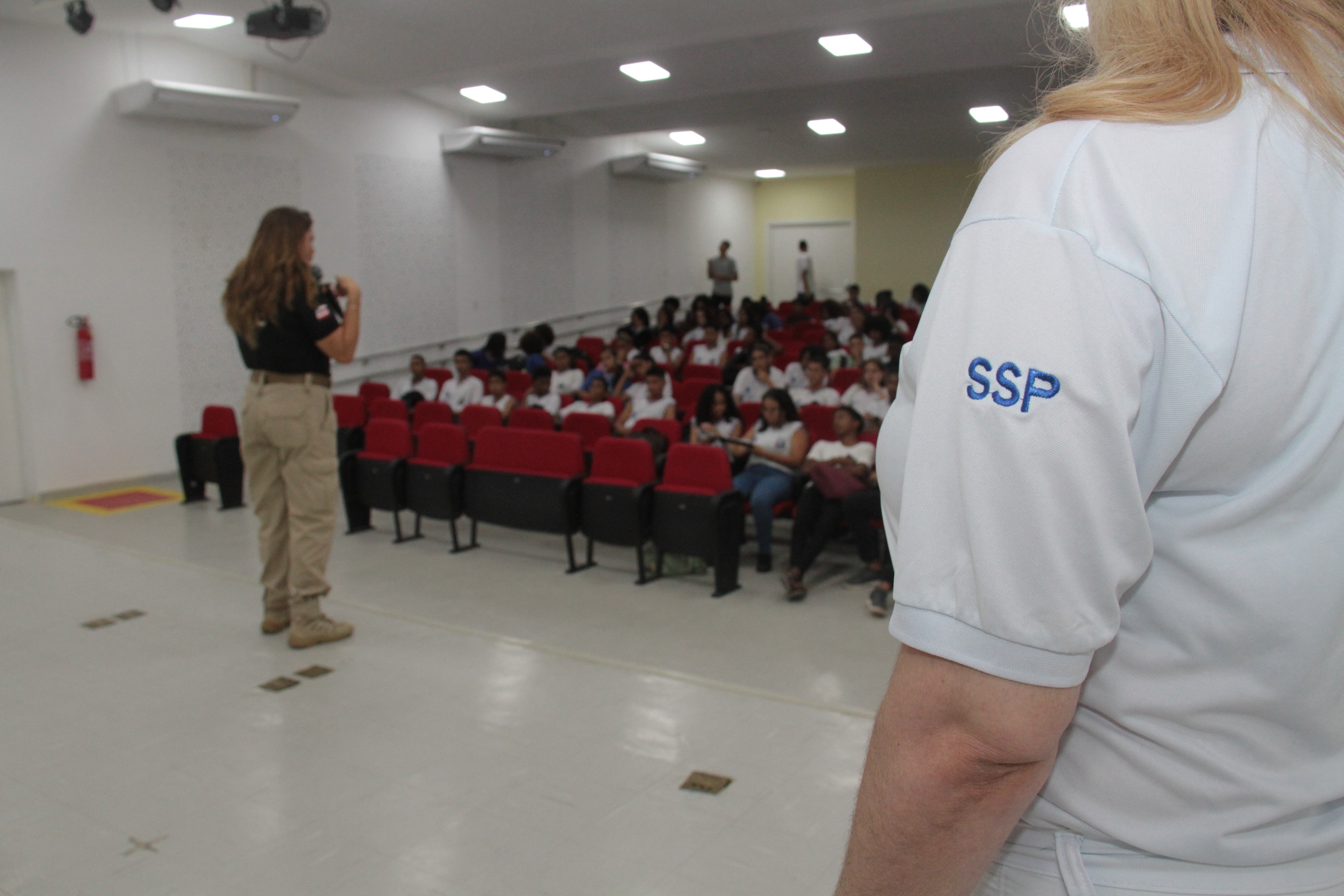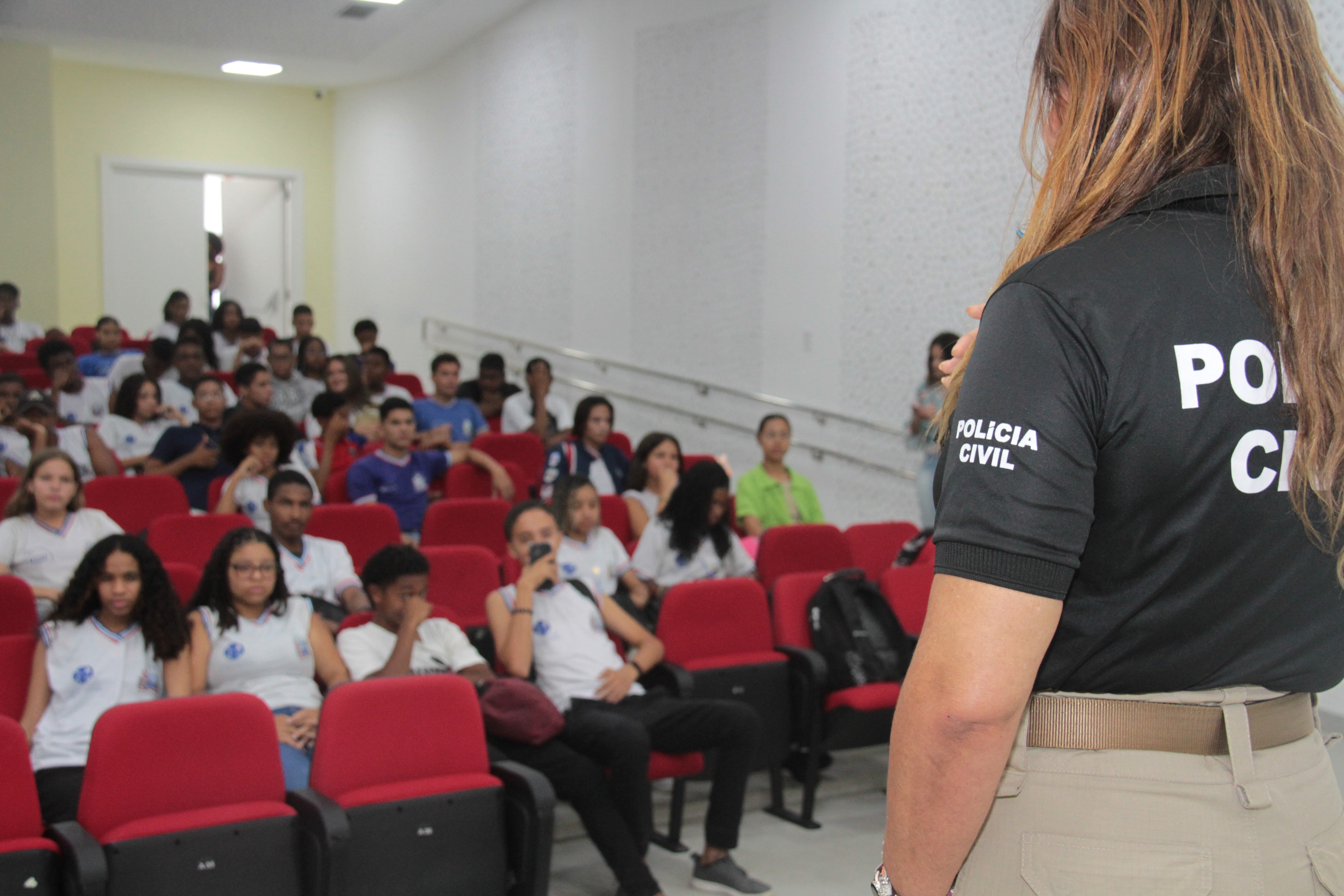 No evento, a titular da 28ª Delegacia Territorial, Simone Moitinho, conversou com os jovens sobre exploração sexual, com foco nos crimes ocorridos pela internet, e como utilizar as redes de maneira segura.