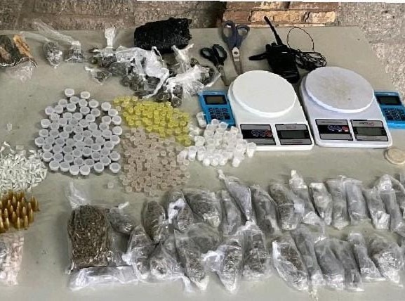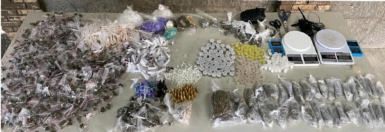 Os pms realizavam ações de patrulhamento tático na área, durante a Operação Força Total, quando surpreenderam um grupo de homens comercializando entorpecentes, que fugiu com a aproximação dos policiais, abandonando no local 1.316 porções de crack, 1.312 de maconha, 447 de cocaína, duas balanças de precisão, duas máquinas de cartão bancário, um radiocomunicador e 360 pinos vazios para o acondicionamento e a venda de drogas.