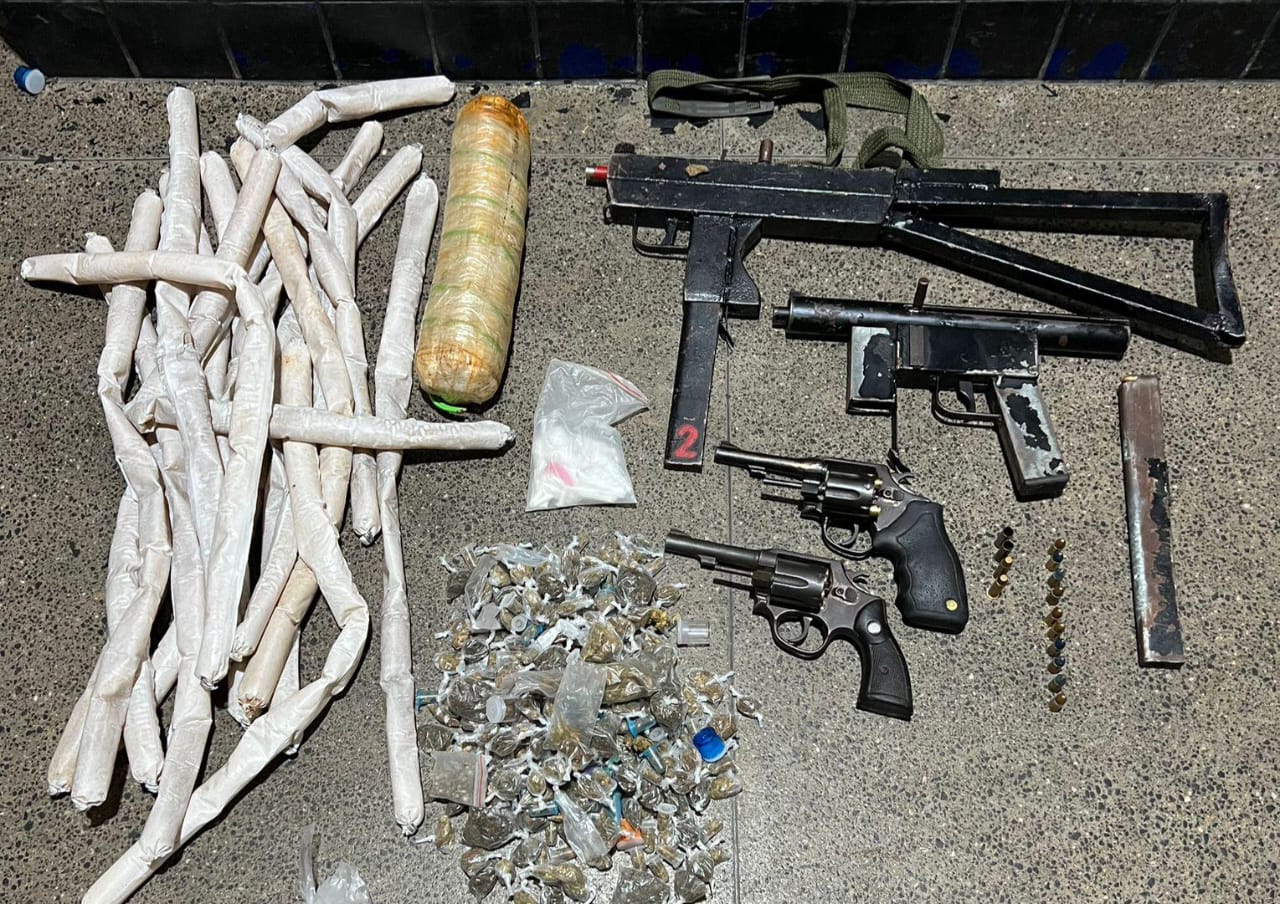 Com o grupo, envolvido com homicídios, roubos e corrupção de menores, e que costumava postar fotos com armas nas redes sociais, foram apreendidos 16 artefatos explosivos, submetralhadoras, revólveres, carregadores e munições.