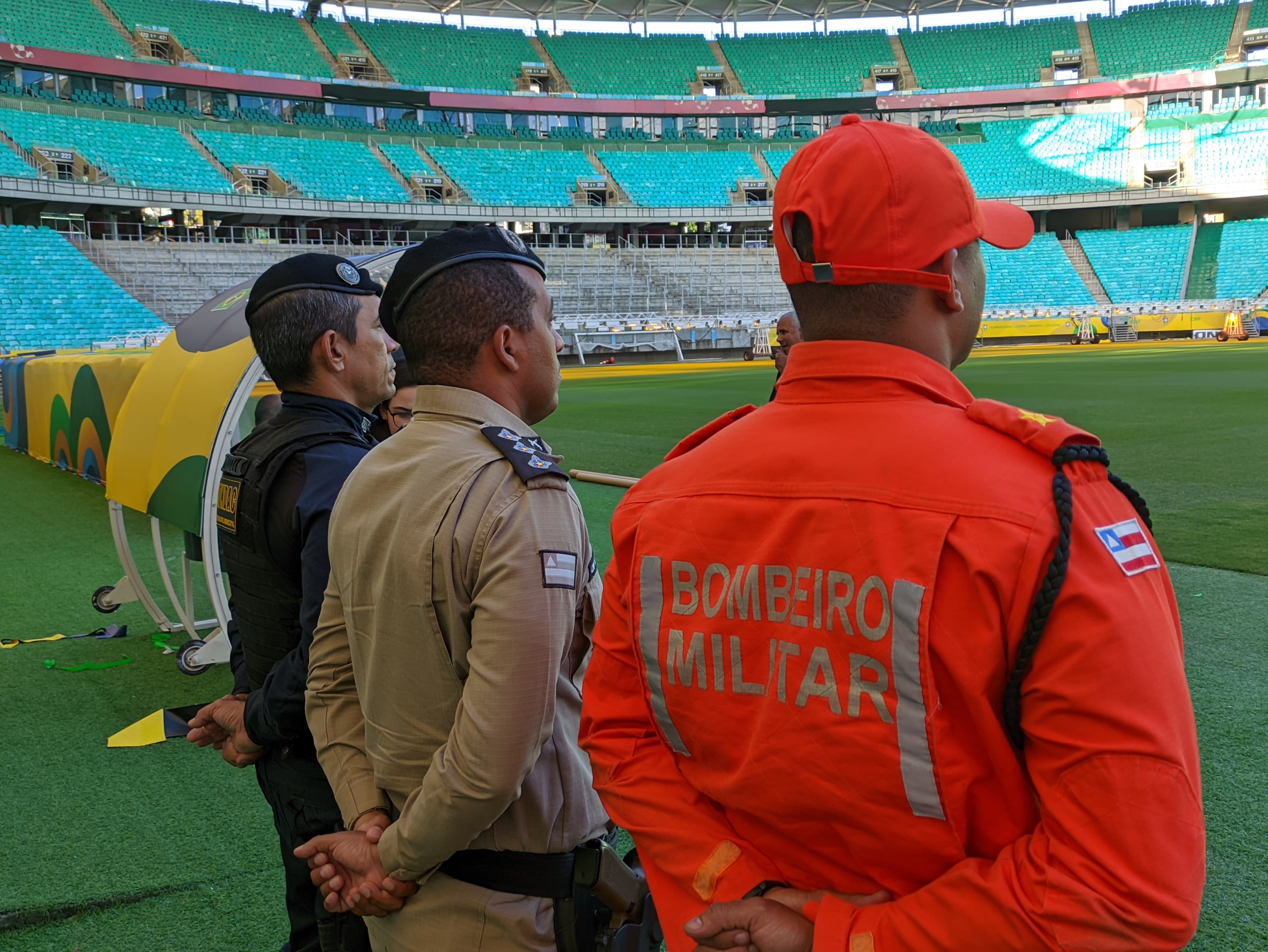 O Corpo de Bombeiros também atenderá ocorrências no estádio, assim como a Polícia Civil.Representantes da Federação Baiana de Futebol, CCR Metrô Bahia e Guarda Municipal também participaram da reunião.