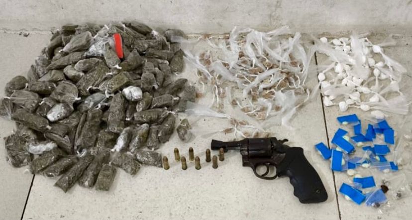 Na ação, foram apreendidos um revólver calibre 38, munições, 220 porções de maconha, 100 de cocaína, 101 de crack, 10 de haxixe, 19 de MD e 22 de ecstasy.