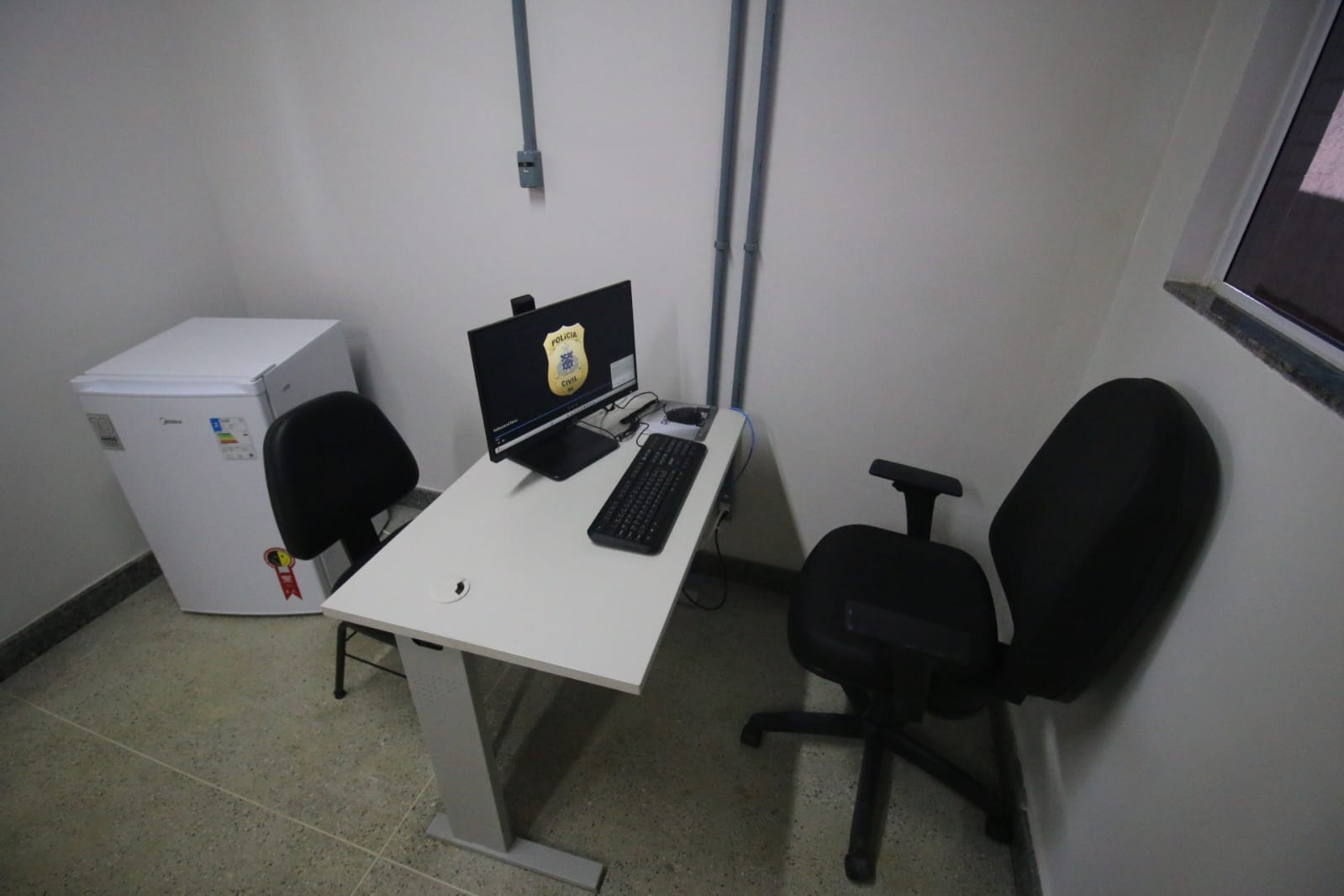 O novo espaço conta com salas para atendimento, do delegado titular, de reconhecimento, carceragem, vestiários masculino e feminino, cartório, auditório, além de um espaço destinado ao registro de ocorrências através da Delegacia Virtual.
