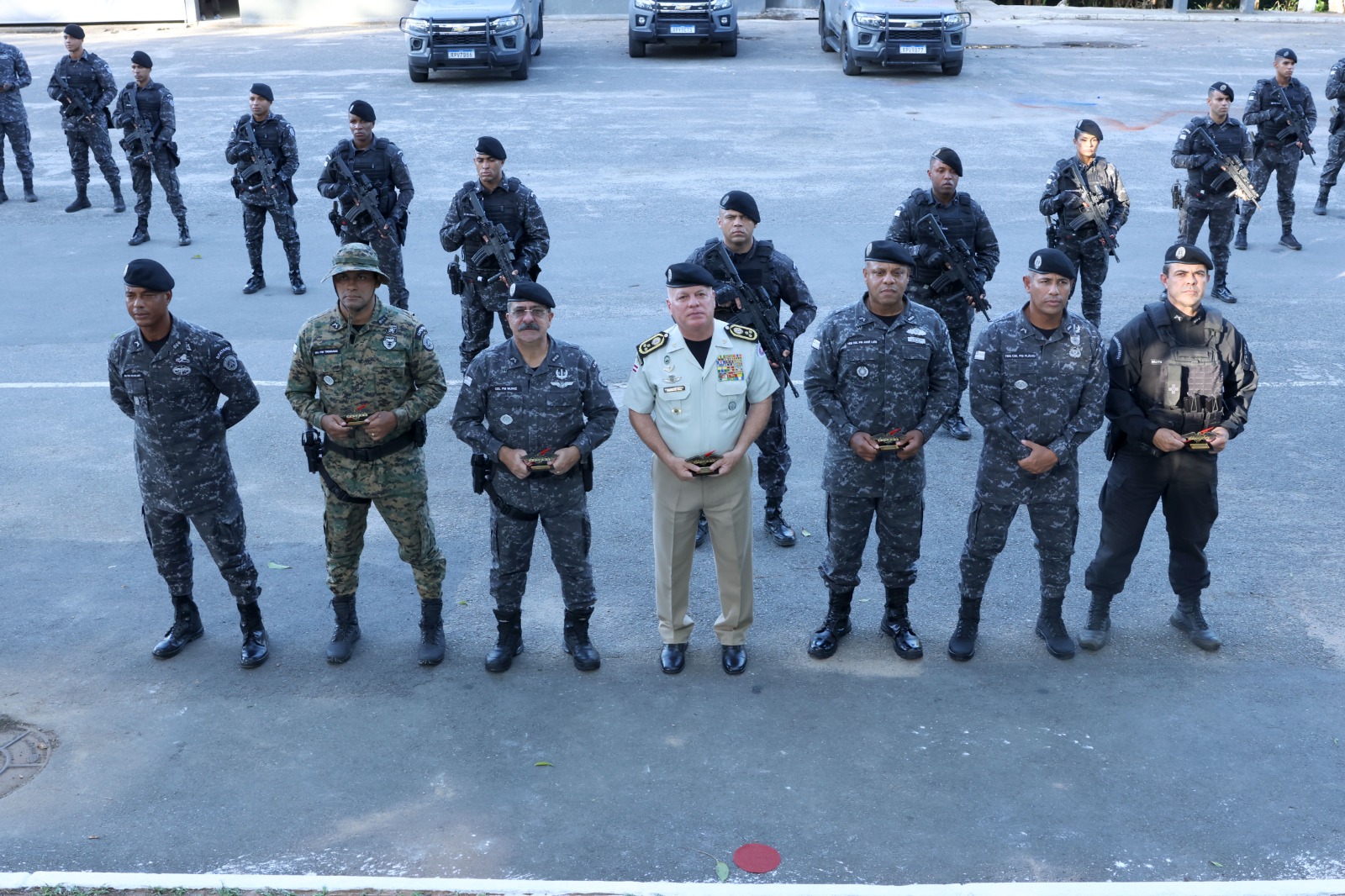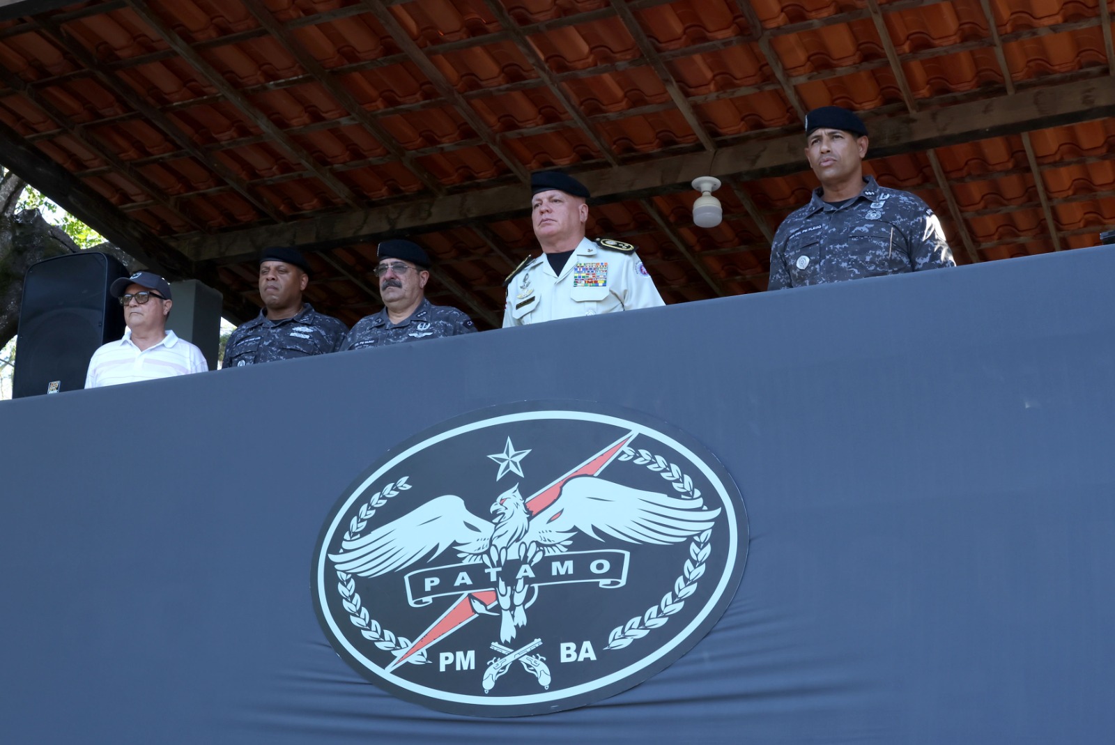 O evento contou com a presença do comandante geral da PM, coronel Paulo Coutinho, do comandante do Comando de Policiamento em Missões Especiais (CPME), coronel Manuel Muniz, do comandante do Batalhão de Patrulhamento Tático Móvel (BPatamo), tenente-coronel Flávio, dentre outras autoridades civis e militares.