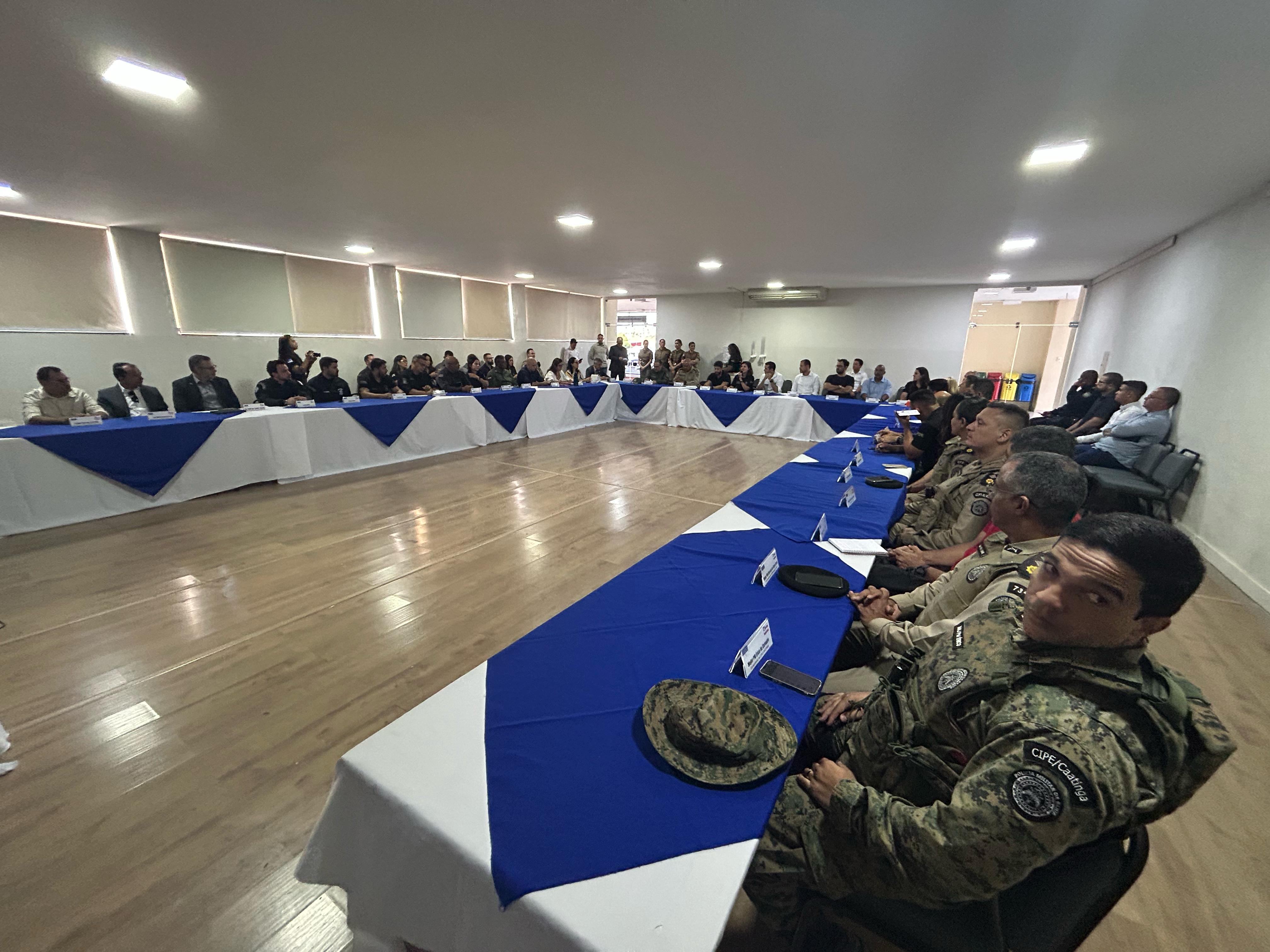 Os gestores se reuniram no auditório do Hotel Grande Rio, com chefes de unidades operacionais para debater o combate interestadual às facções além de apresentar dados relacionados à Segurança Pública dos estados.