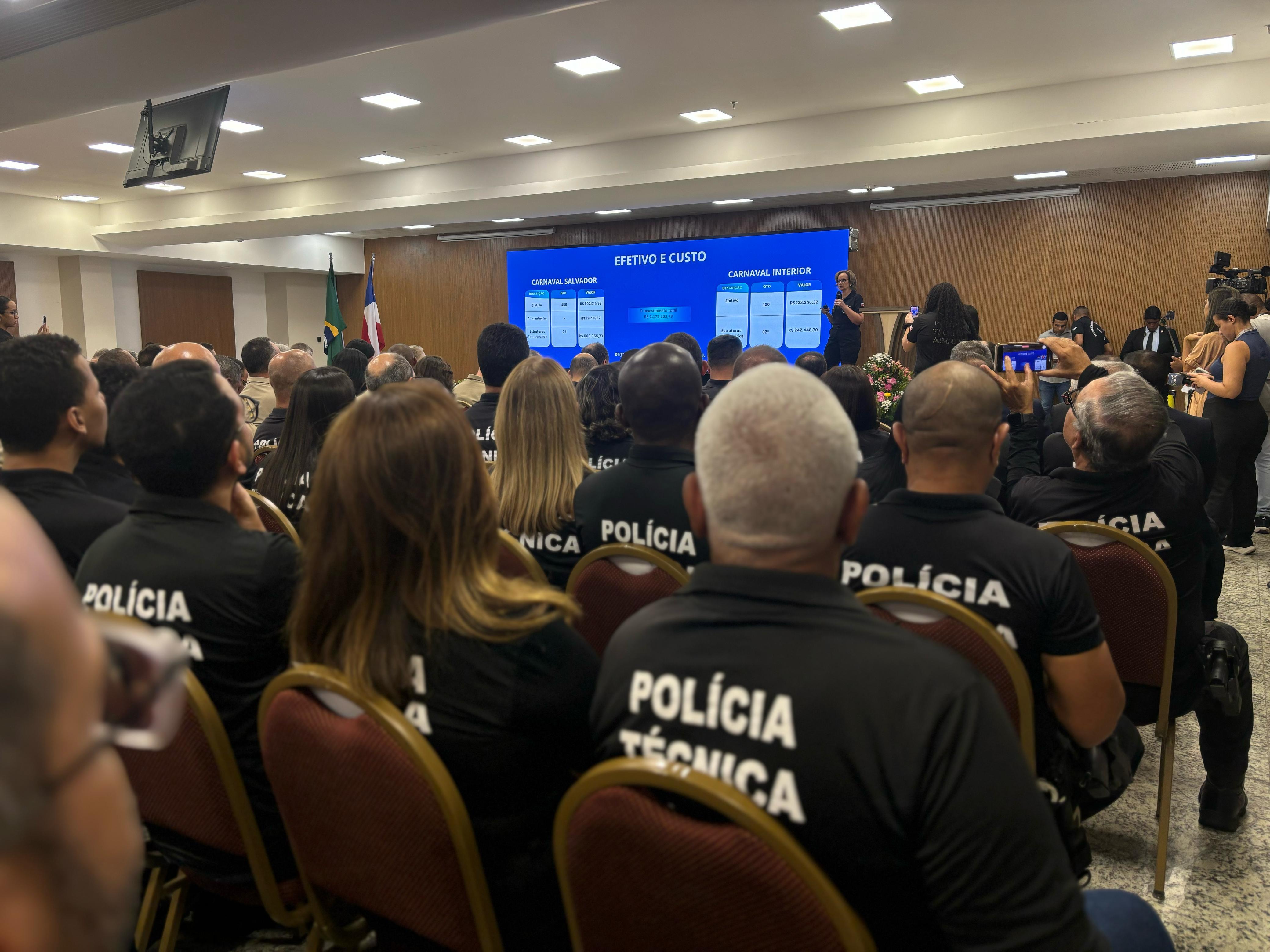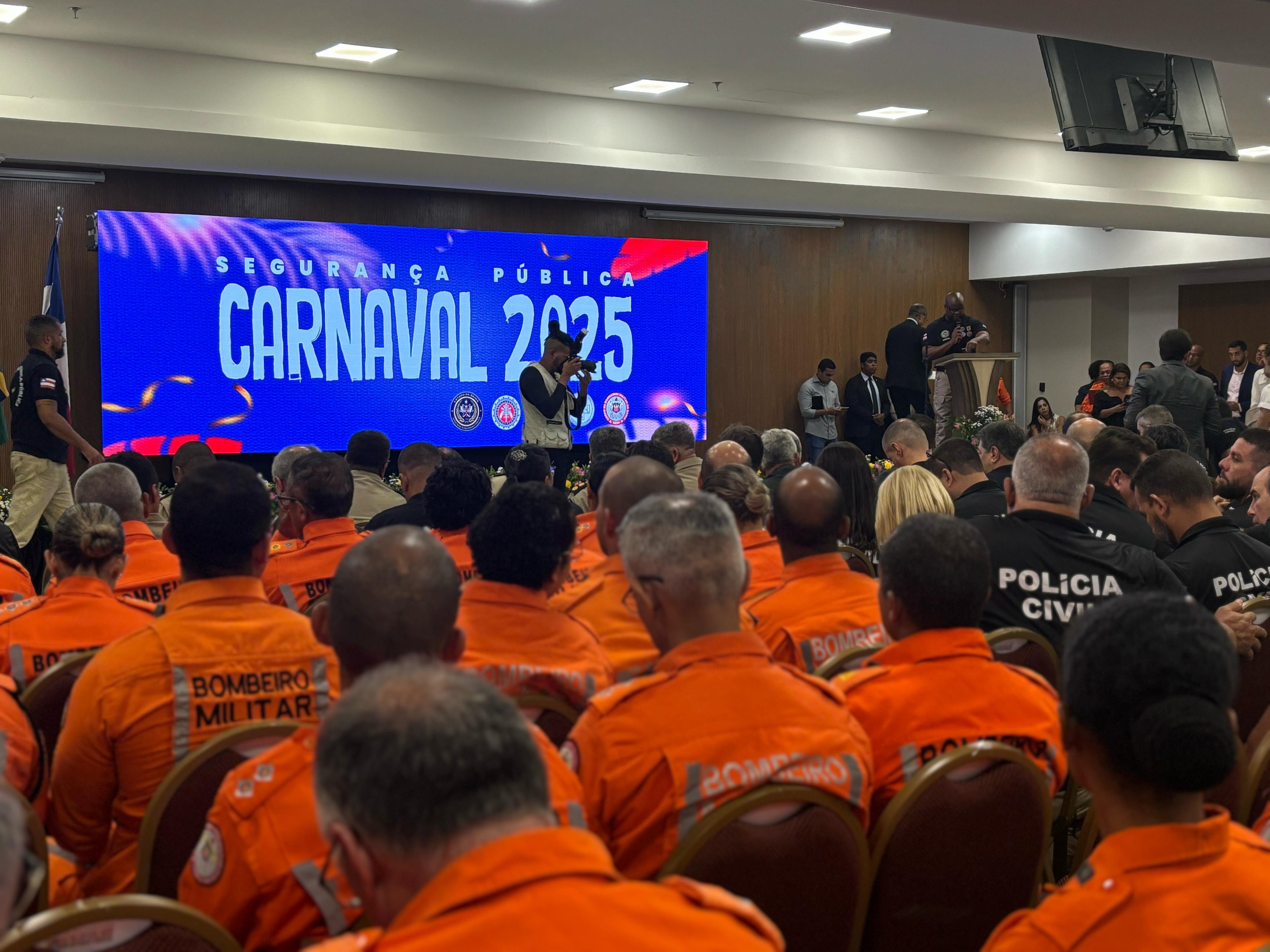 Trinta e sete mil policiais e bombeiros, além de 1.500 câmeras de videomonitoramento e Reconhecimento Facial serão empregados pela Secretaria da Segurança Pública, em 113 cidades da Bahia que realizarão festas de Carnaval. O esquema especial foi apresentado nesta terça-feira (18), no auditório do Centro de Cultura da Bahia.