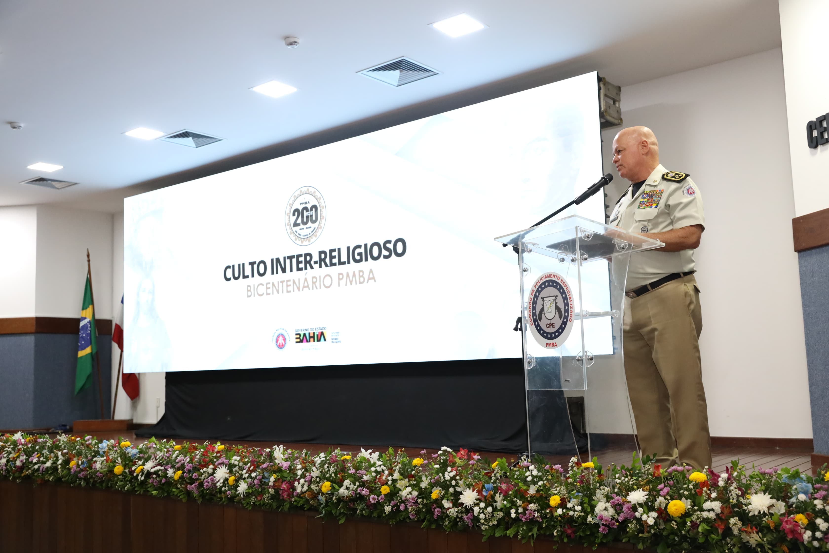 O comandante geral da PMBA, coronel Paulo Coutinho, rendeu graças a Deus e reforçou a relevância da união dos núcleos religiosos. "Eu usarei uma frase bíblica para sintetizar este momento, até aqui nos ajudou o Senhor, portanto não seria possível comemorar uma data tão significativa sem render graças a Deus e com esta união de credos tão significativa".