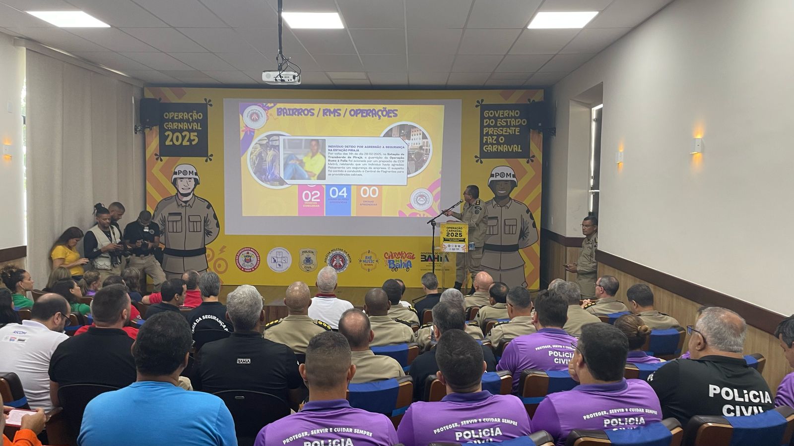 A reunião de balanço contou com as presenças do vice-governador e coordenador do carnaval, Geraldo Júnior, do secretário da Segurança Pública (SSP), Marcelo Werner, do comandante-geral da Policia Militar, coronel Coutinho, outras autoridades e representantes de órgãos envolvidos diretamente no carnaval.