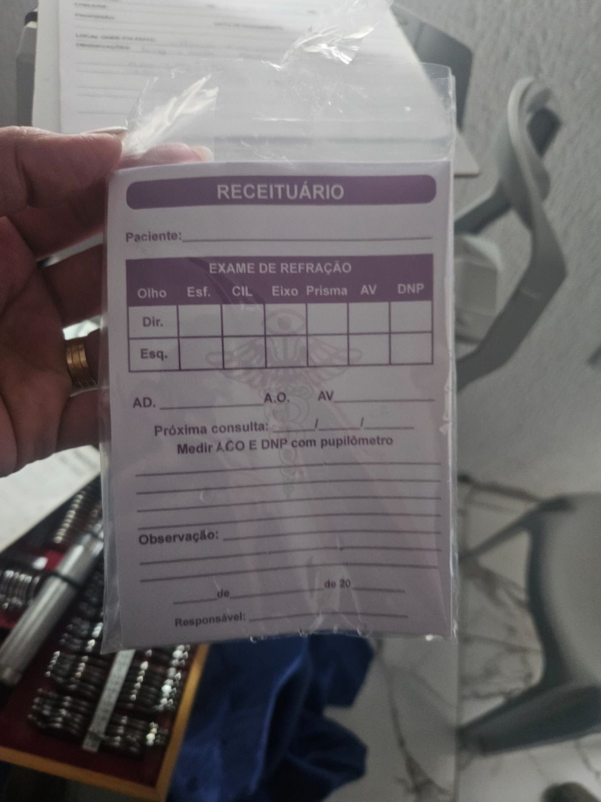 Durante as diligências, testemunhas confirmaram ter realizado exames com a mulher e relataram a ocorrência de venda casada, envolvendo os atendimentos oftalmológicos e a comercialização de lentes e armações. O material era fornecido por uma clínica localizada no estado de Minas Gerais, com a qual a suspeita mantinha vínculo. A suspeita, que tem a profissão de optometrista, extrapolou os limites legais da profissão, configurando exercício ilegal da medicina.
