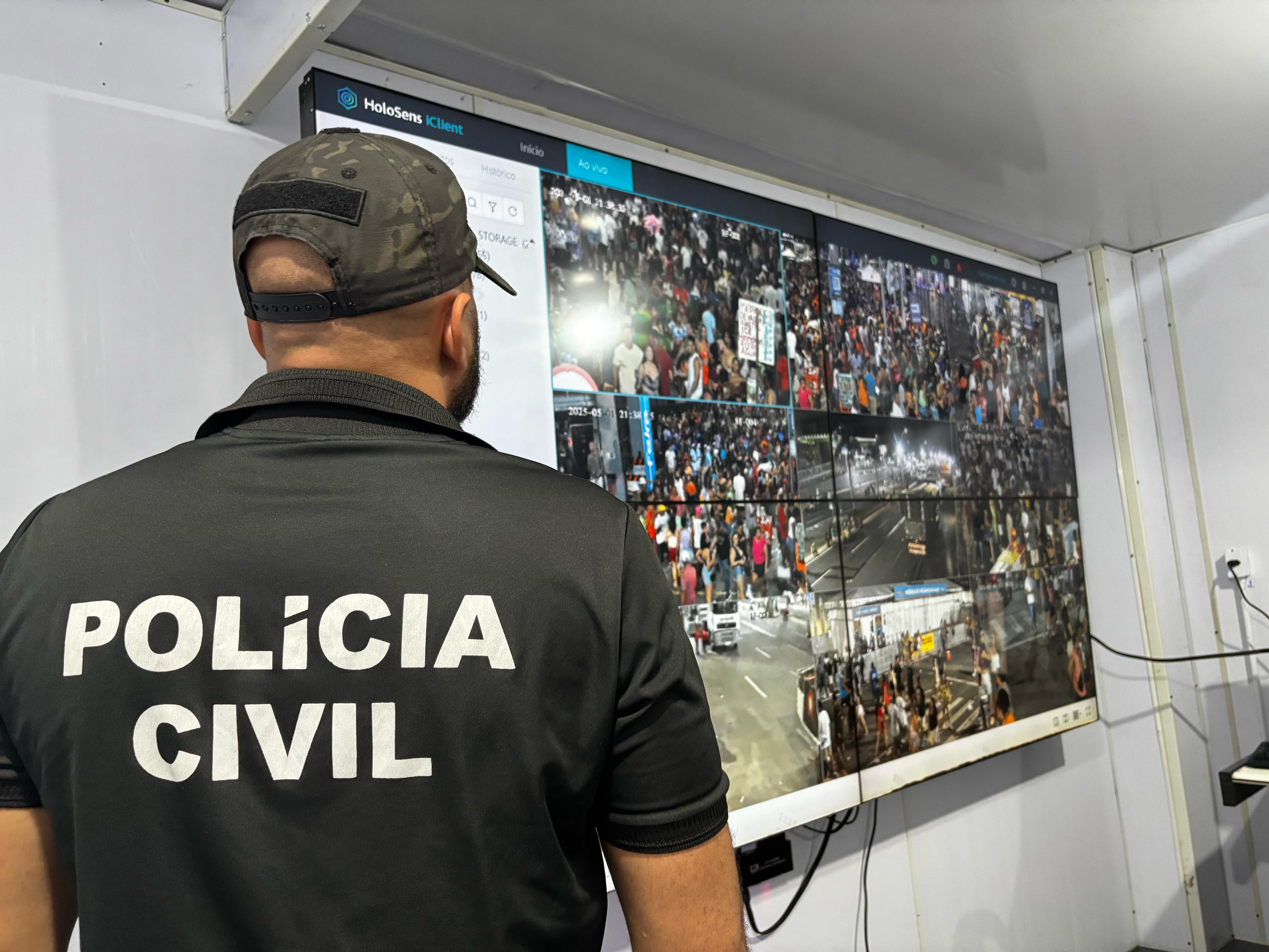 As câmeras inteligentes da SSP também flagraram seus pessoas com mandados de prisão através do Sistema de Reconhecimento Facial, que computou a presença de cerca de 350 mil foliões na avenida.