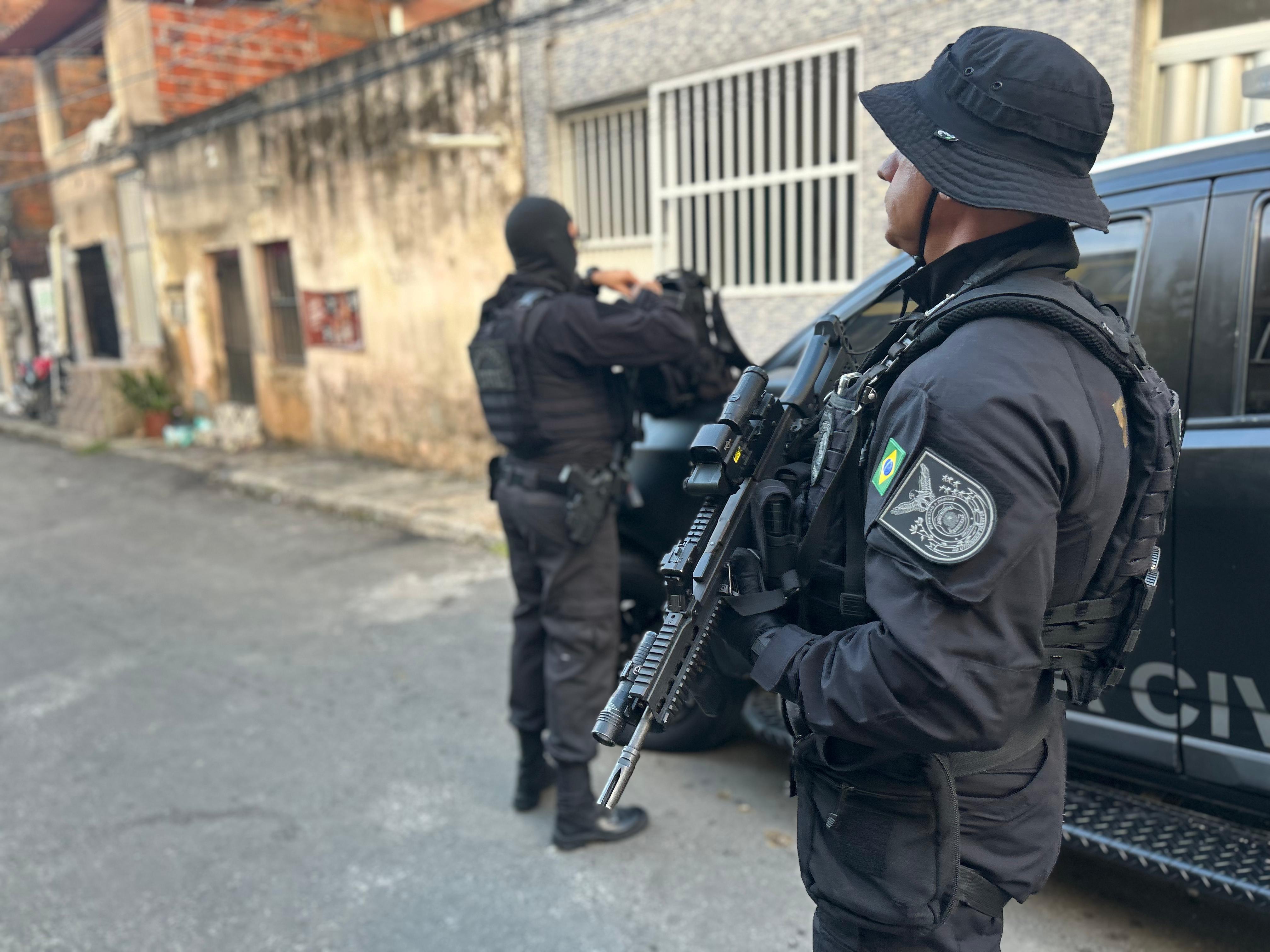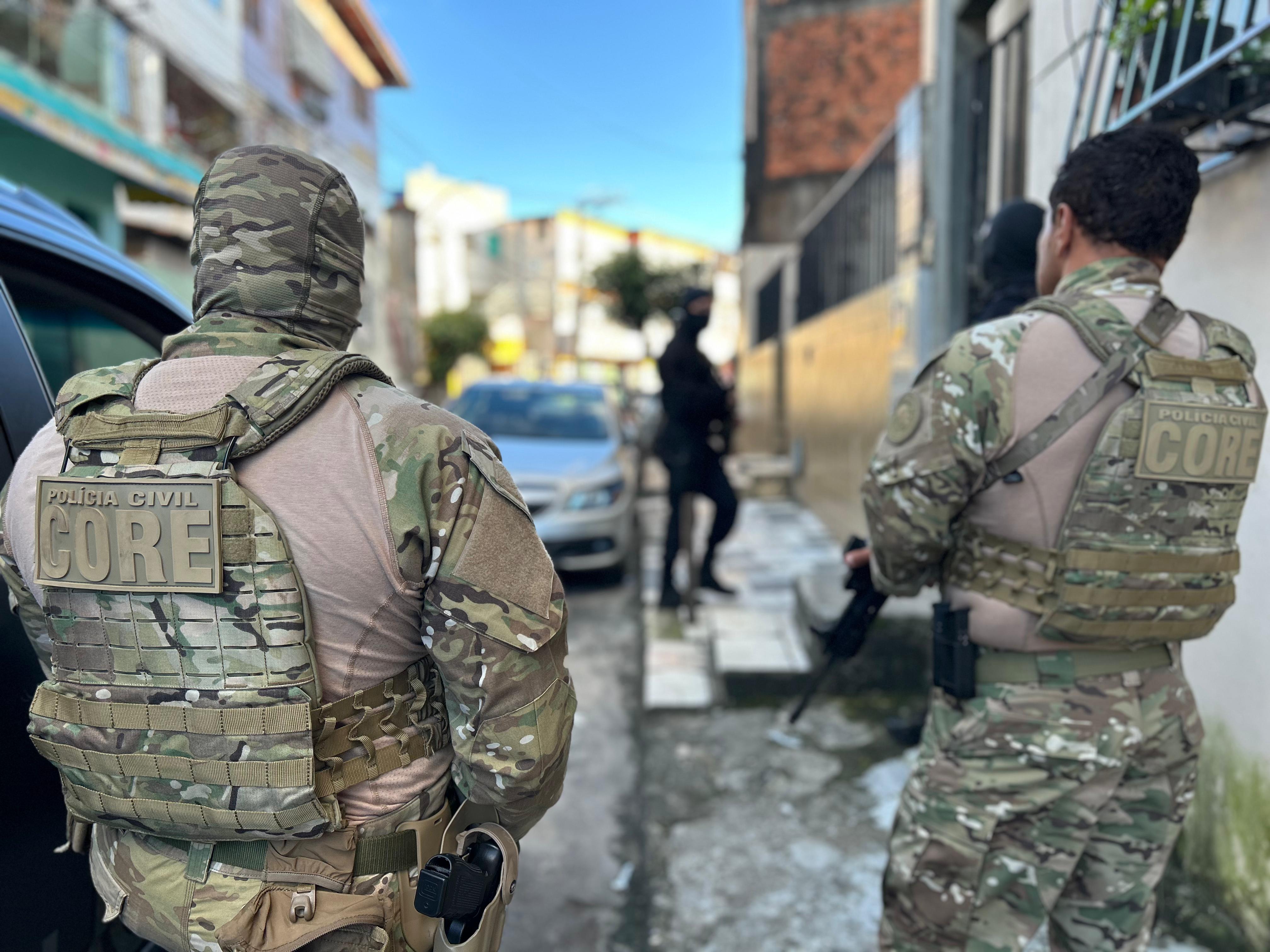 Cinco foragidos da Justiça foram capturados no Nordeste de Amaralina. Pistola, carregador, munições, drogas e roupas camufladas foram apreendidos. Em Portão, um mandado foi cumprido contra o líder de uma facção com atuação no bairro de Ondina.