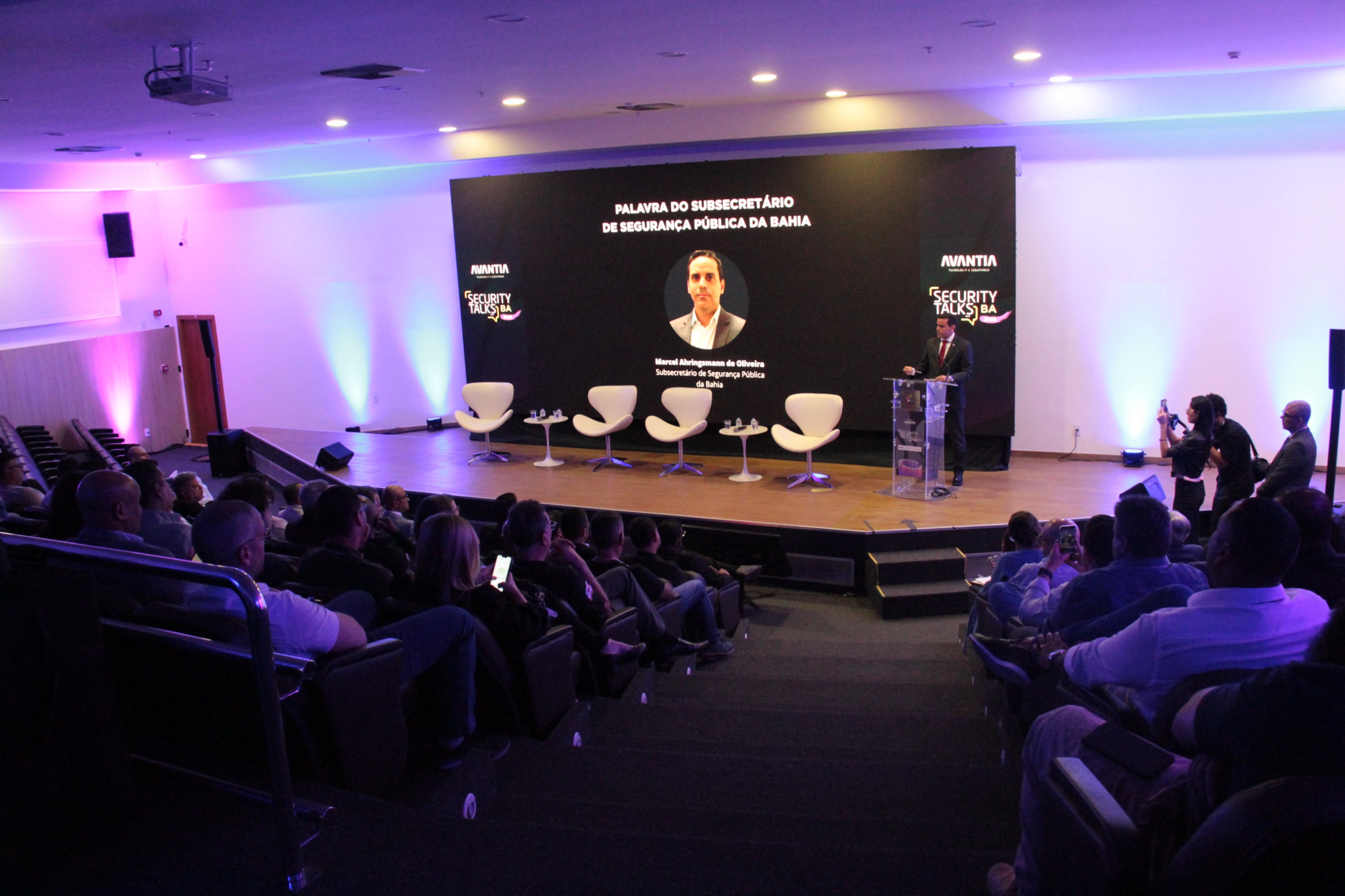 O subsecretário da Secretaria da Segurança Pública (SSP), Marcel de Oliveira, destacou a importância do evento para inovar projetos na área. “Quando pensamos em segurança, pensamos no efetivo, armamento, EPIs, viaturas, mas lembramos também da tecnologia. A gente trabalha com os três “Is”, Integração, Inteligência e investimento e todos eles estão interligados”, comentou o gestor.