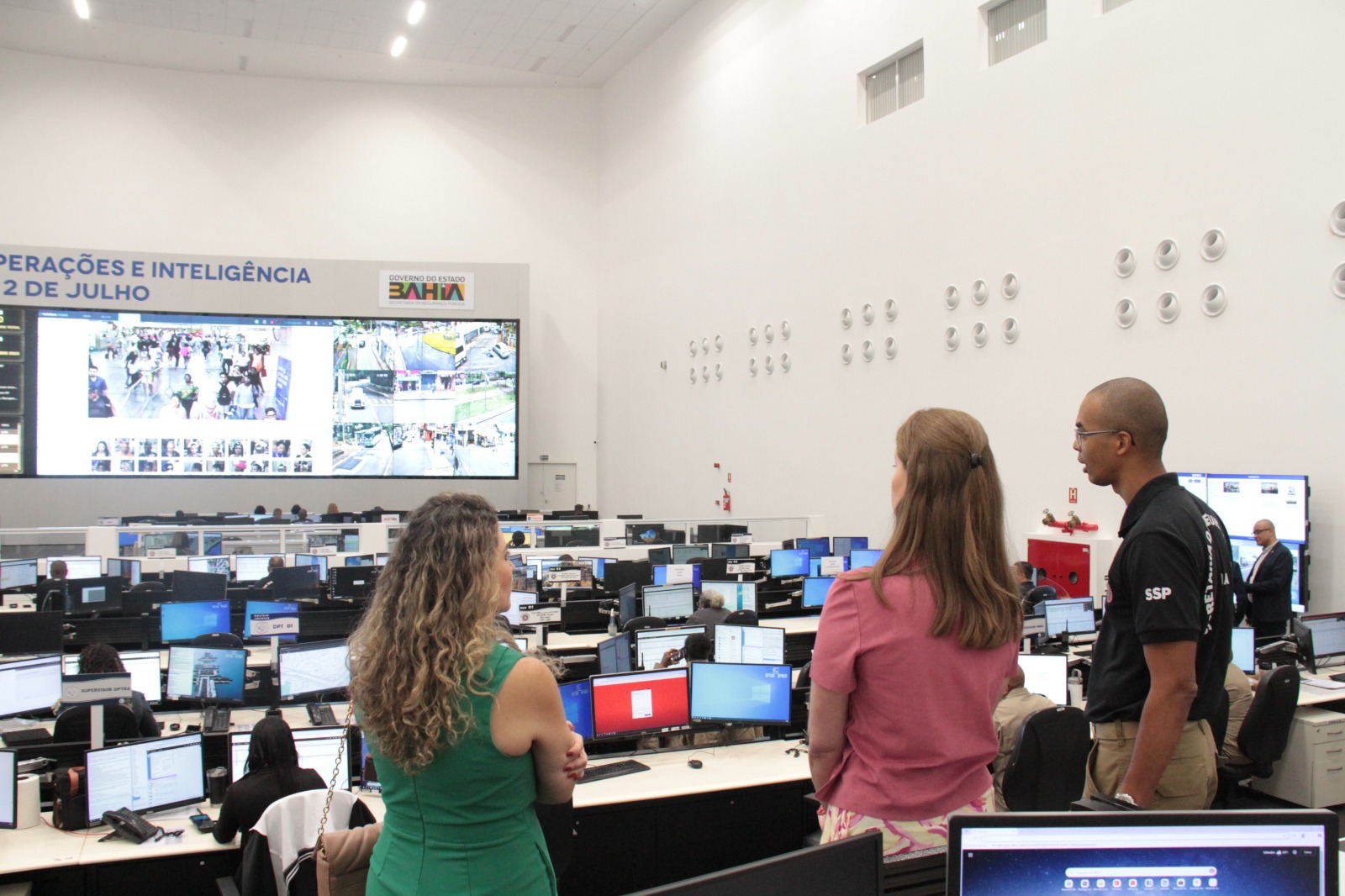 A Secretaria da Segurança Pública da Bahia (SSP-BA) recebeu nesta segunda-feira (15), a visita técnica da diretora de Gestão do Fundo Nacional de Segurança Pública, Camila Pintarelli. O encontro foi realizado no Centro de Operações e Inteligência, onde foram apresentados pelo secretário Marcelo Werner os equipamentos, tecnologias e viaturas empregadas na pasta a partir da parceria e de recursos destinados pela Secretaria Nacional de Segurança Pública (SENASP).