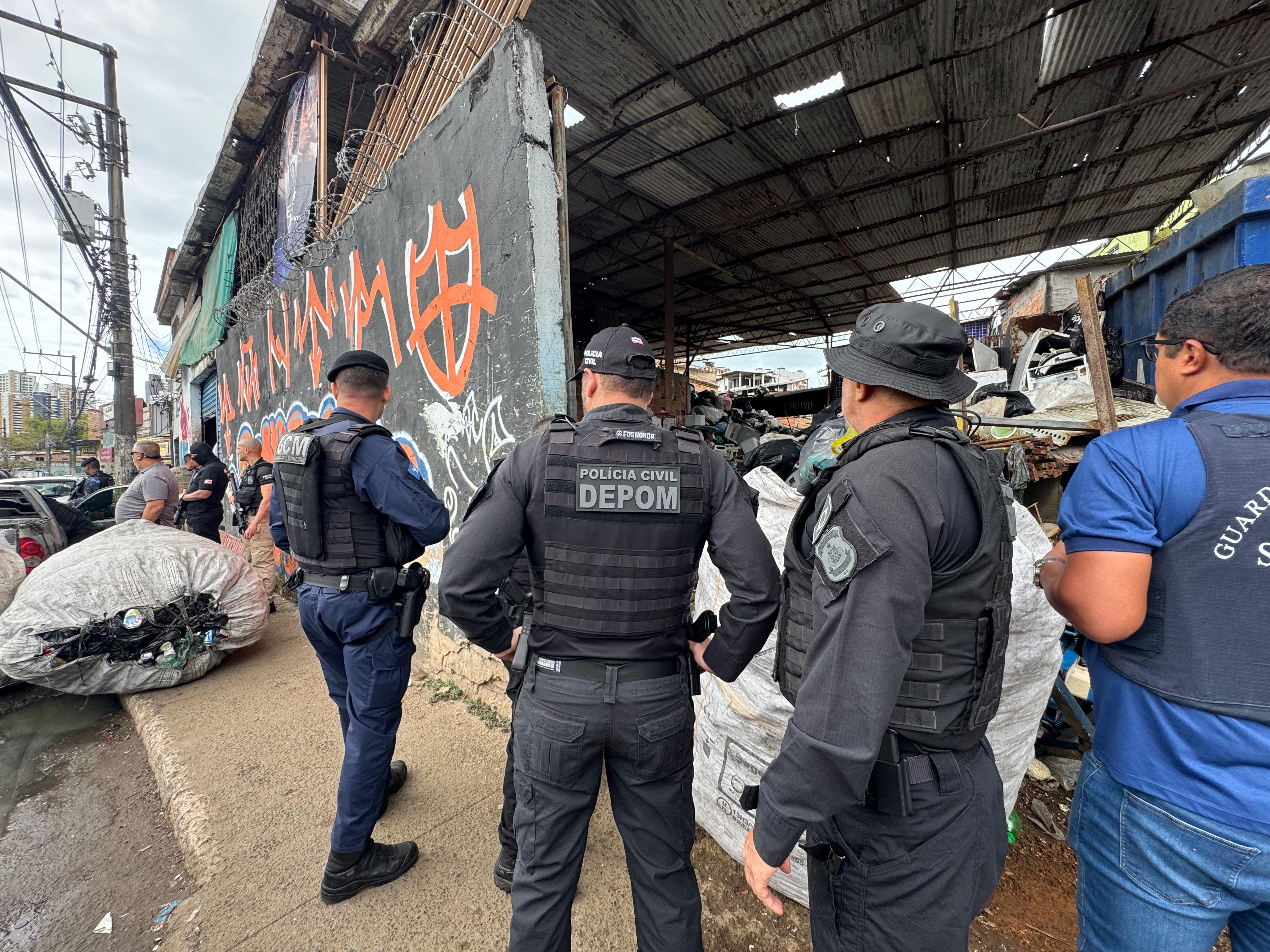 Estabelecimentos que atuam no comércio de sucatas e produtos reciclados foram alvos da Operação Escudo Urbano, que teve a segunda fase deflagrada nesta segunda-feira (29), pela Polícia Civil, por meio do Departamento de Polícia Metropolitana (Depom), em Salvador. O objetivo é neutralizar o ciclo que envolve furtos, roubos e a possível receptação de produtos ilícitos em ferros-velhos da capital, além do tráfico de drogas também  fomentado nesta cadeia.