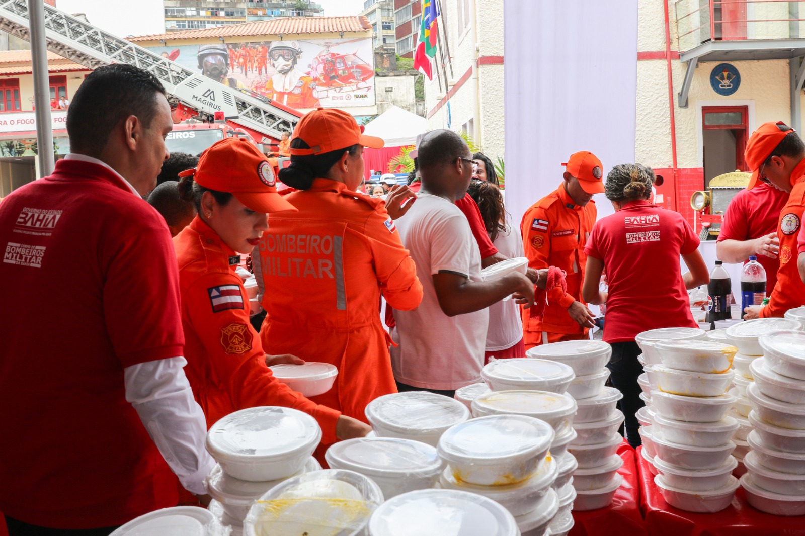 As festividades começaram às 8h, com uma missa campal que abriu a programação e reuniu centenas de pessoas. Logo depois, a procissão percorreu as ruas do Centro Histórico até chegar ao quartel, por volta das 10h, em um cortejo marcado por cantos, rezas e inúmeras demonstrações de fé. Ao meio-dia, foram distribuídas 1.500 quentinhas de caruru, gesto que reafirma a tradição que atravessa gerações. A celebração reforça o vínculo profundo entre o Corpo de Bombeiros Militar da Bahia e sua padroeira.