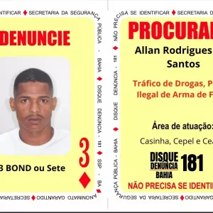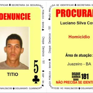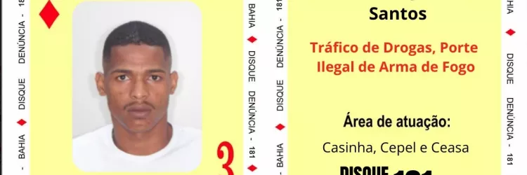 3 de Ouros do Baralho do Crime é procurado por participação em abandono de corpos na RMS