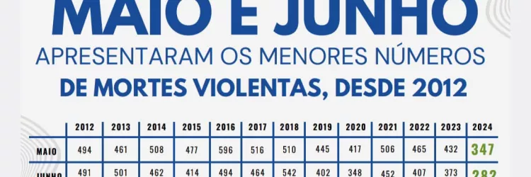 Maio e junho registram os menores números de mortes violentas dos últimos 12 anos