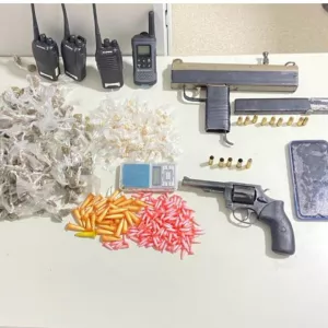 Submetralhadora, revólver, rádios comunicadores e drogas são apreendidos pela Rondesp Atlântico na Boca do Rio