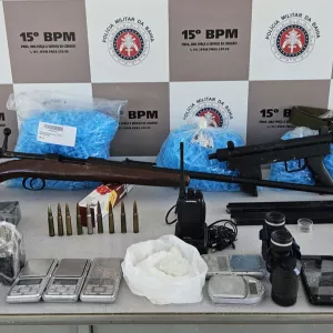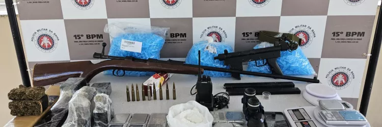 Fuzil, submetralhadora, munições e drogas são encontrados pelo 15º BPM