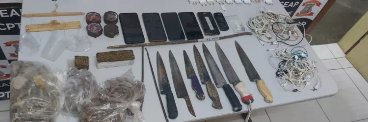 Celulares, drogas e facas são encontrados no Conjunto Penal de Teixeira de Freitas